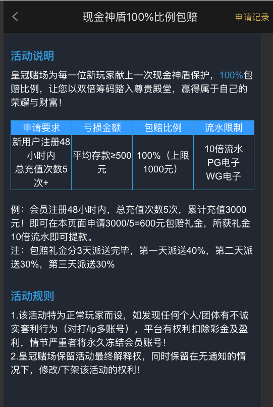 只能娱乐PG或者WG电子,娱乐其他游戏将会盈利扣除,彩金代码需打10倍流水,彩金封顶288,超过288将会扣除多余的,彩金代码打到多少后需充值对等金额,再打一倍流水不限制游戏不限制金额就可以全部提