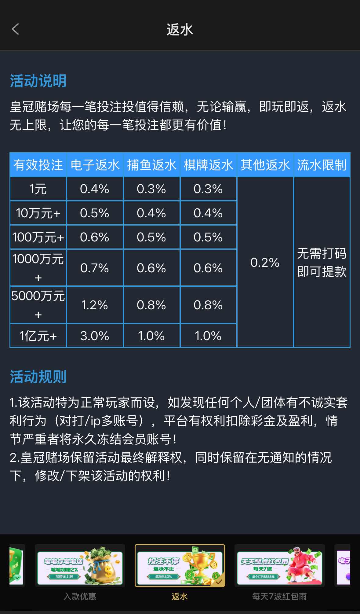 如发现有不诚实套利行为如对打、多IP多账号,平台有权利扣除所得彩金和盈利,情节严重者将封号