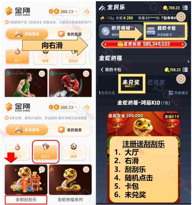 兄弟们 找到刮刮乐的地方了,点到刮刮乐里面就可以找到*我的卡包*了