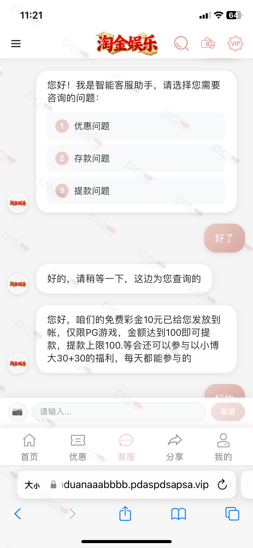 撸成功的老哥,请跟客服说您是从PG论坛 【PG.Biz】过来的。