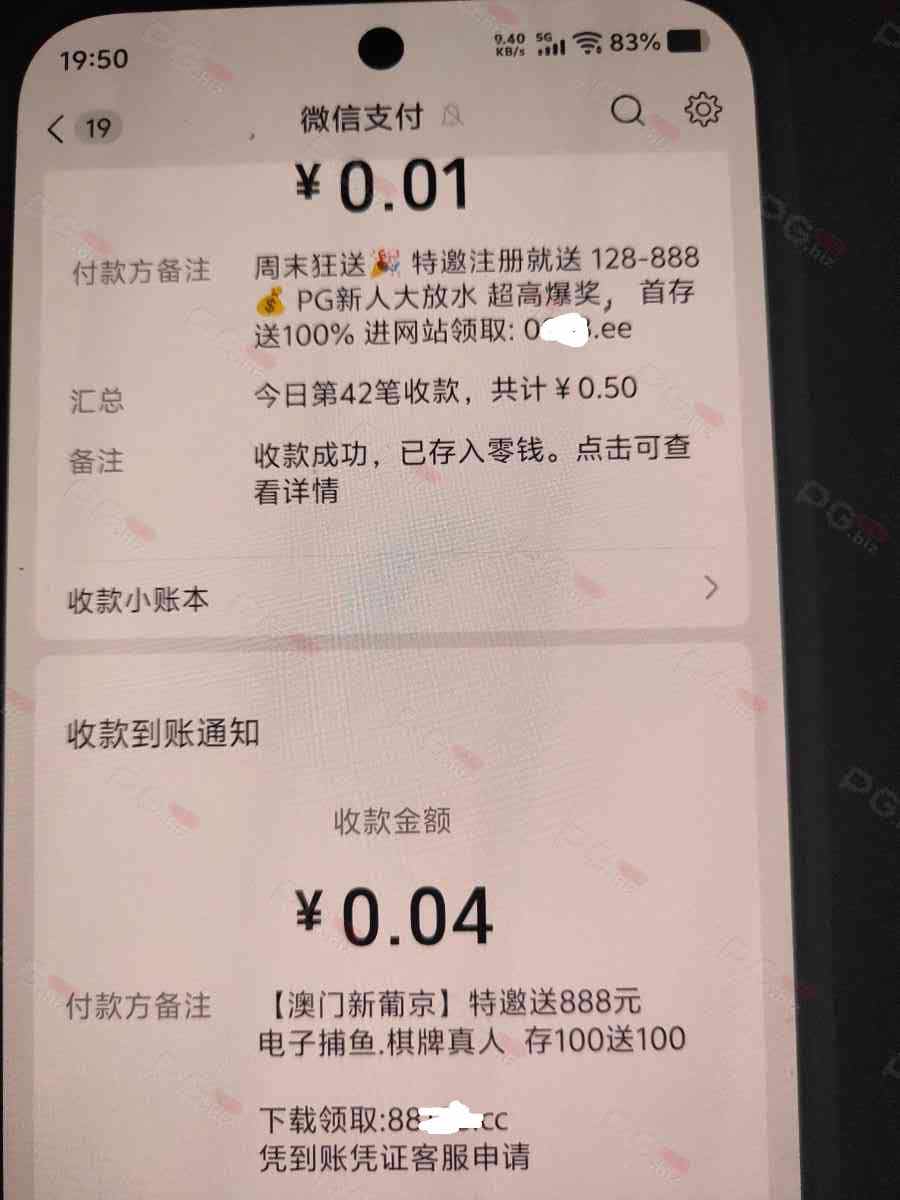 天天收到,没有一个送的,不知道微信收款码怎么被狗庄,狗代理知道的