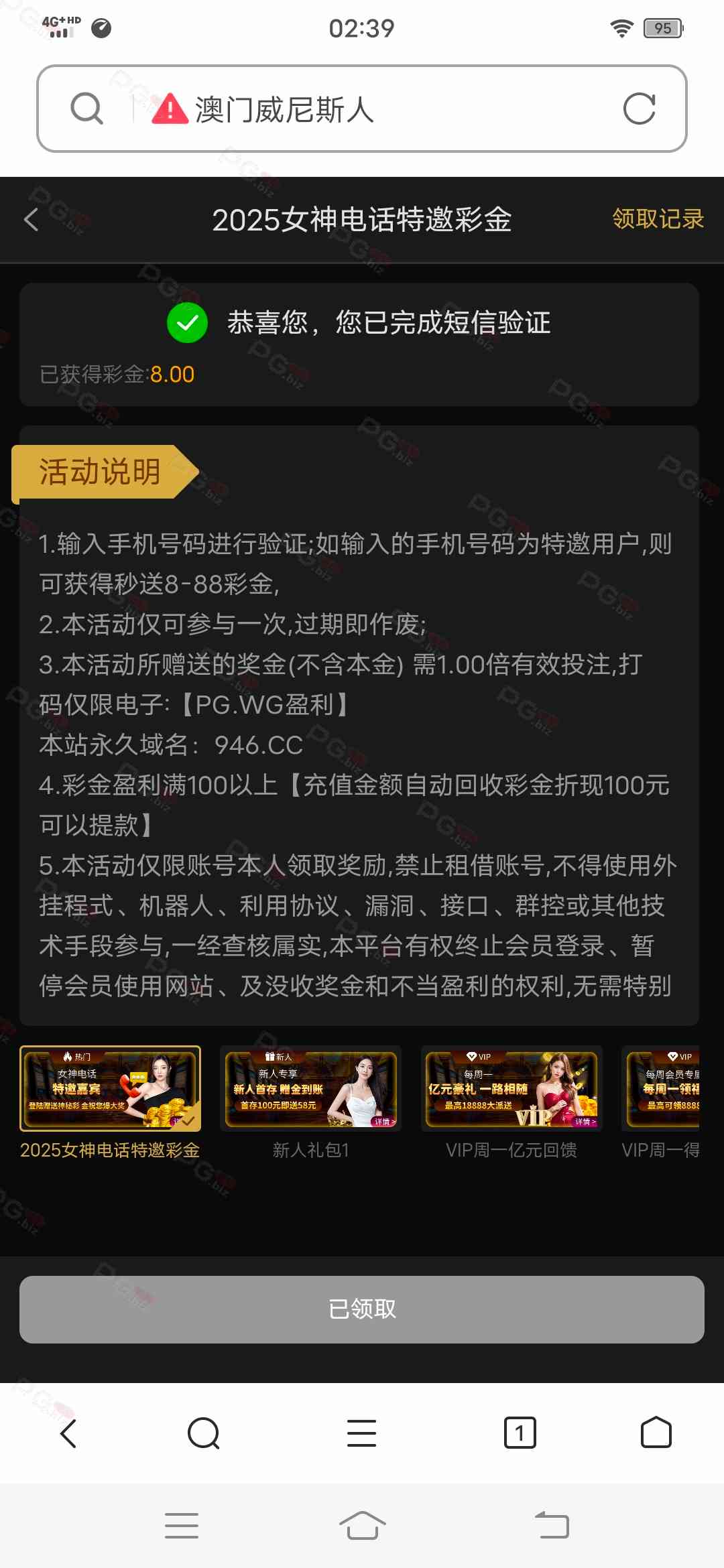 撸成功的老哥,请跟客服说您是从PG论坛 【PG.Biz】过来的。
