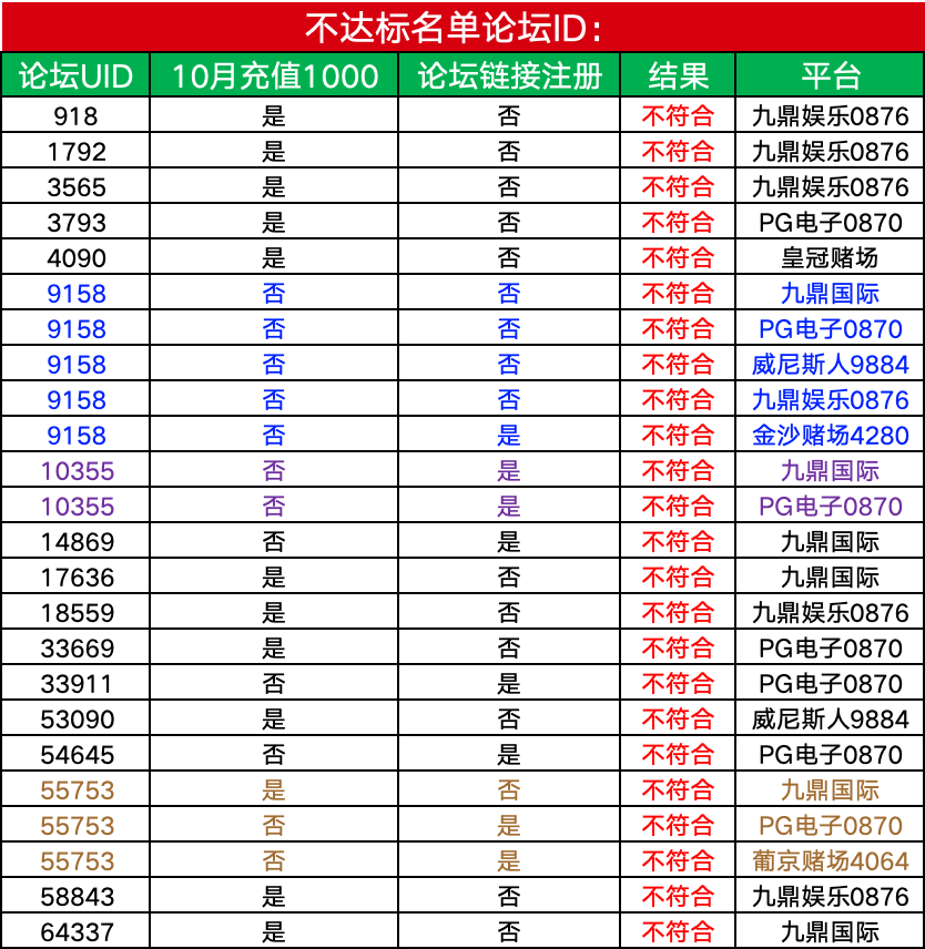 以下为不达标名单论坛ID,其他人员方可开始兑奖