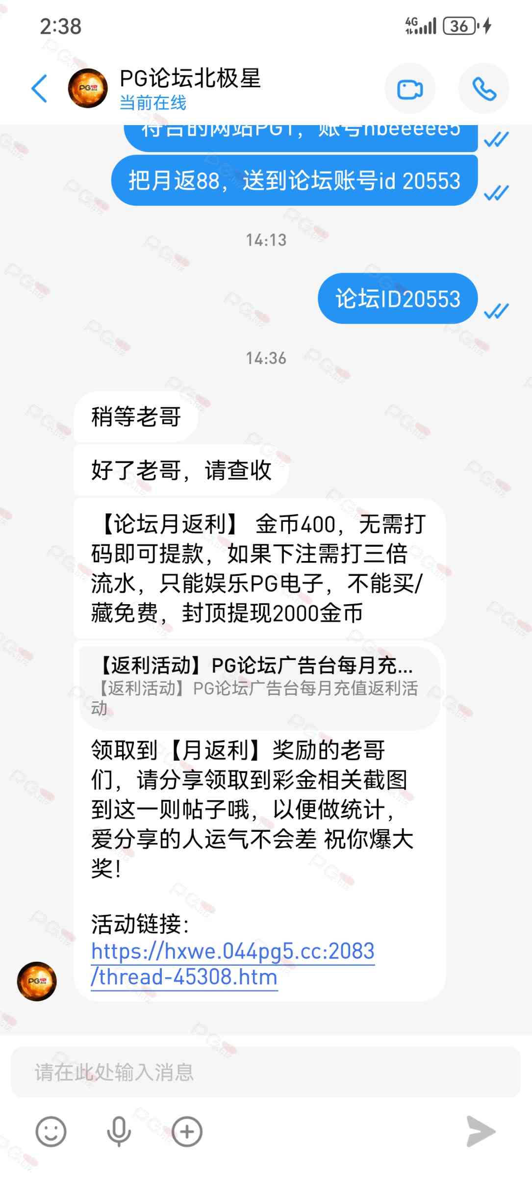 感谢大家对上个月(10月份)【PG论坛广告台每月充值返利活动】的热情支持!自活动推出以来,我们收到了大量会员的踊跃报备,也感受到了大家对PG论坛一如既往的信任与陪伴。