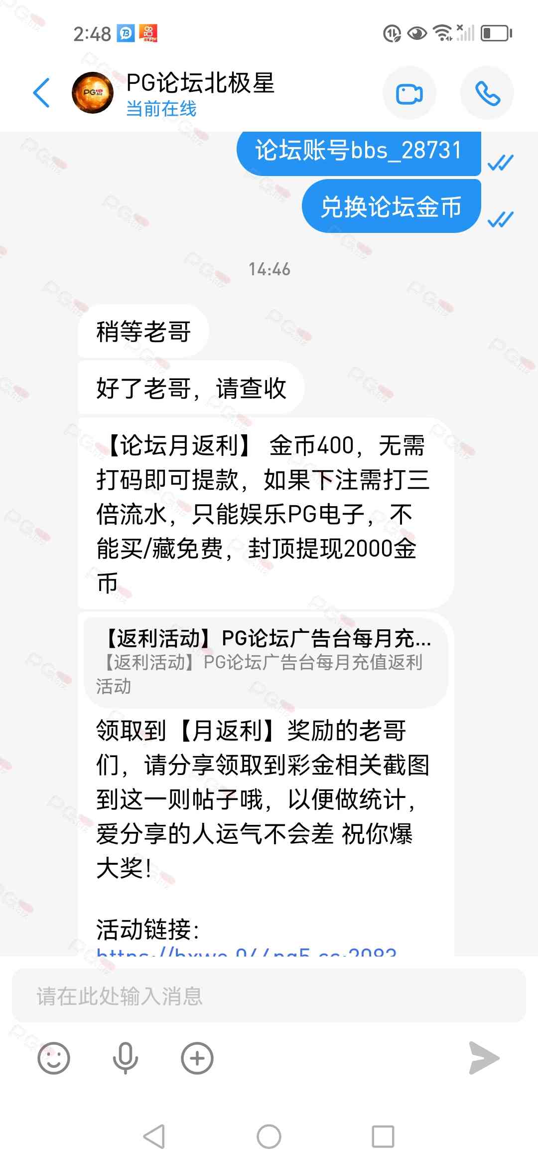 3.返利将会以钱能派发,如果没有钱能的可以兑换为PG娱乐金币400,无需打码即刻提款。