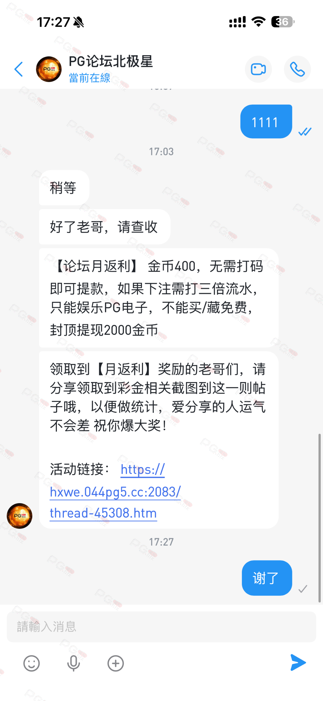 撸成功的老哥,请跟客服说您是从PG论坛 【PG.Biz】过来的。