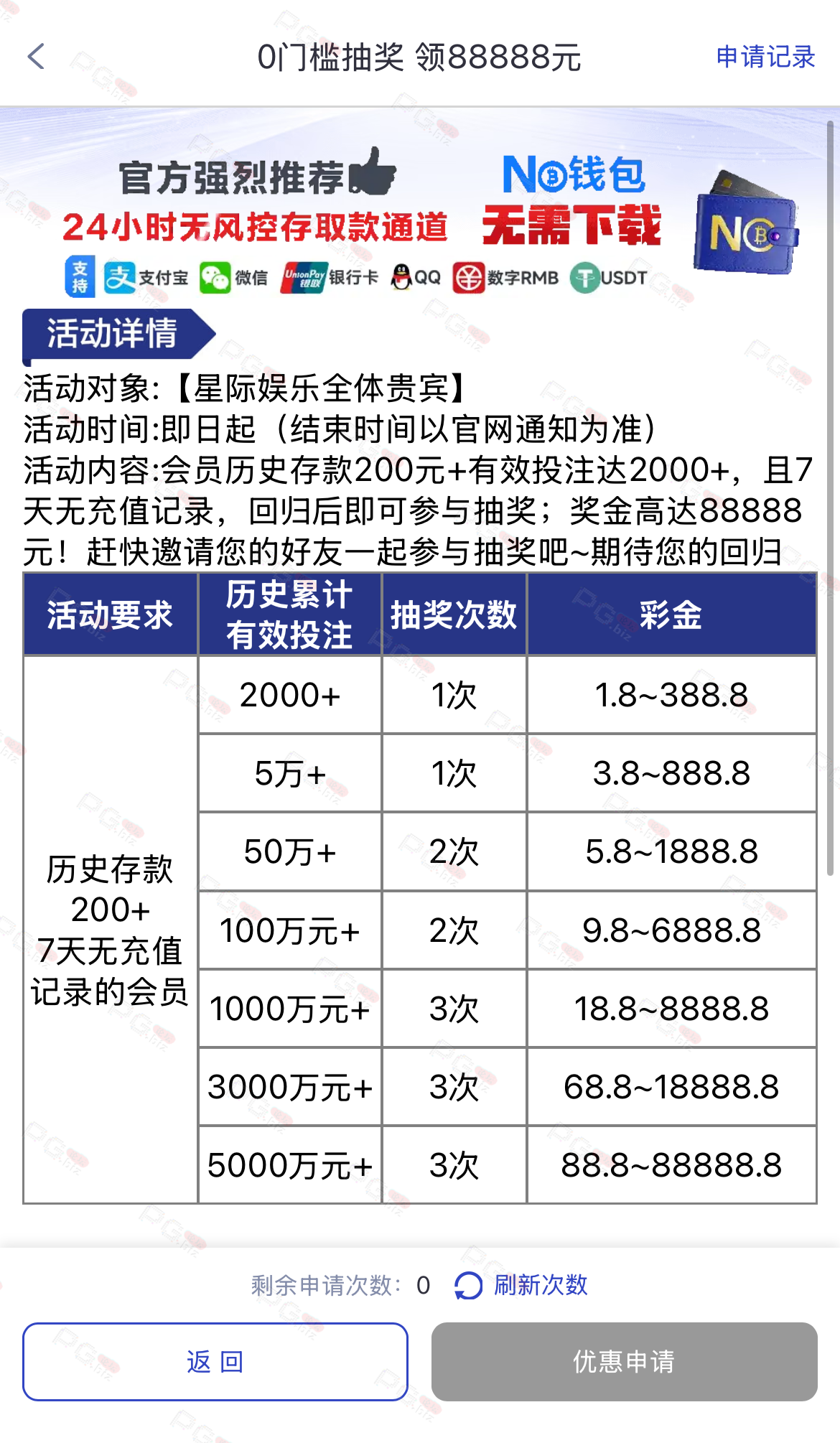 我老号充值过v3,一年没充值了,申请打码2000+安排了3.8,回归活动4自助申请,具体可以看活动图哦!