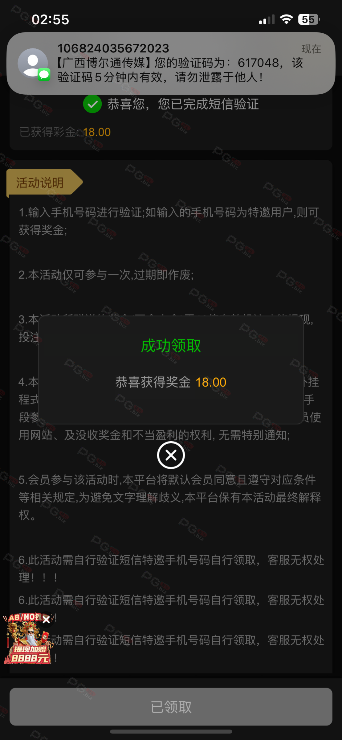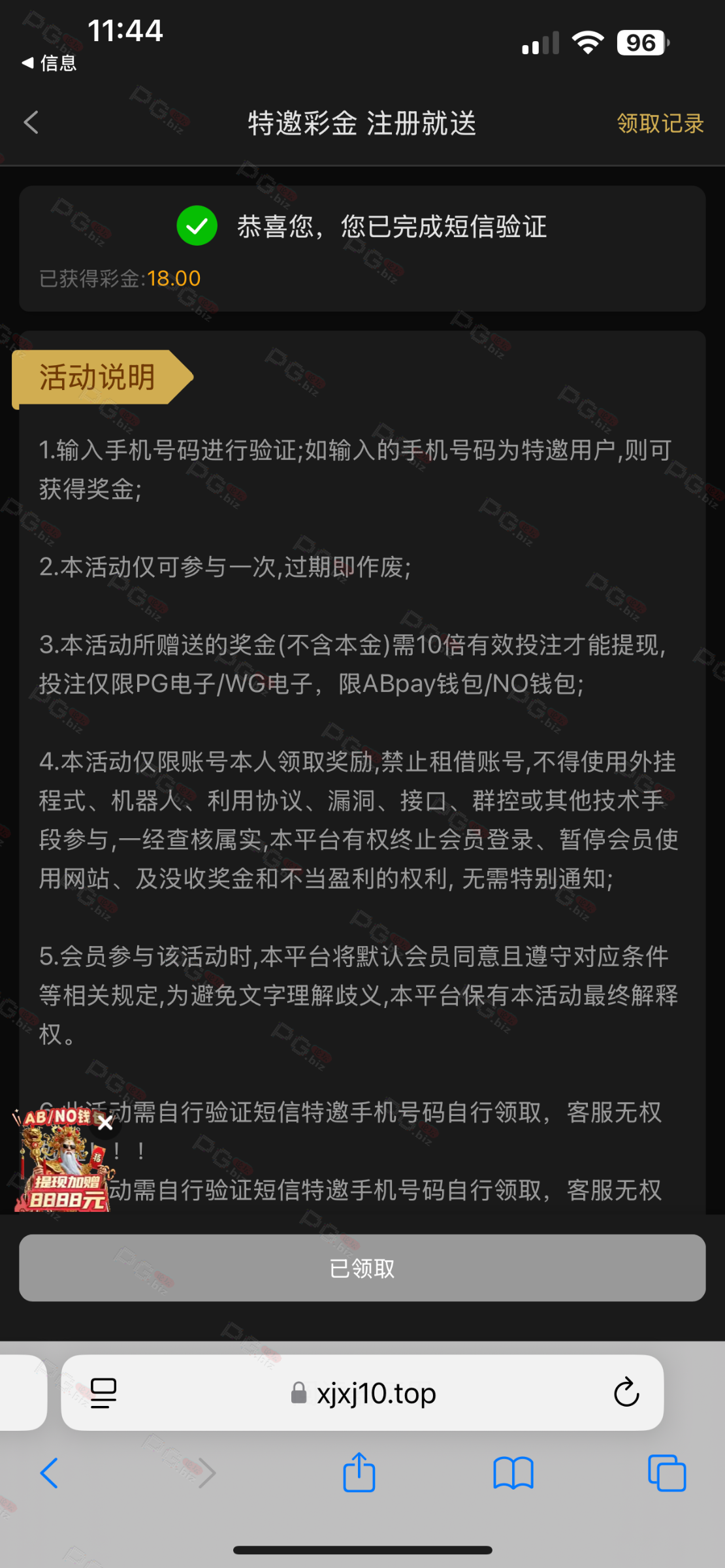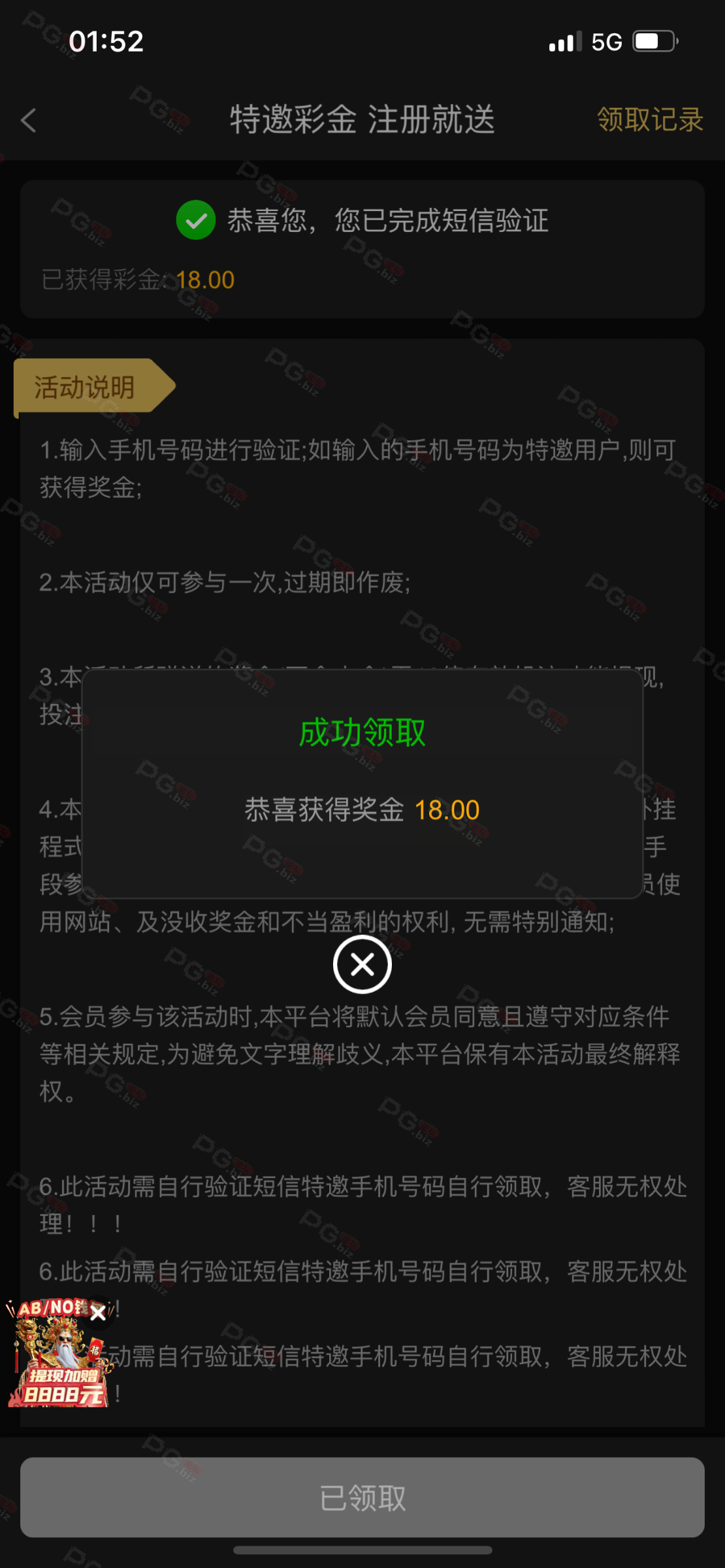 撸成功的老哥,请跟客服说您是从PG论坛 【PG.Biz】过来的。