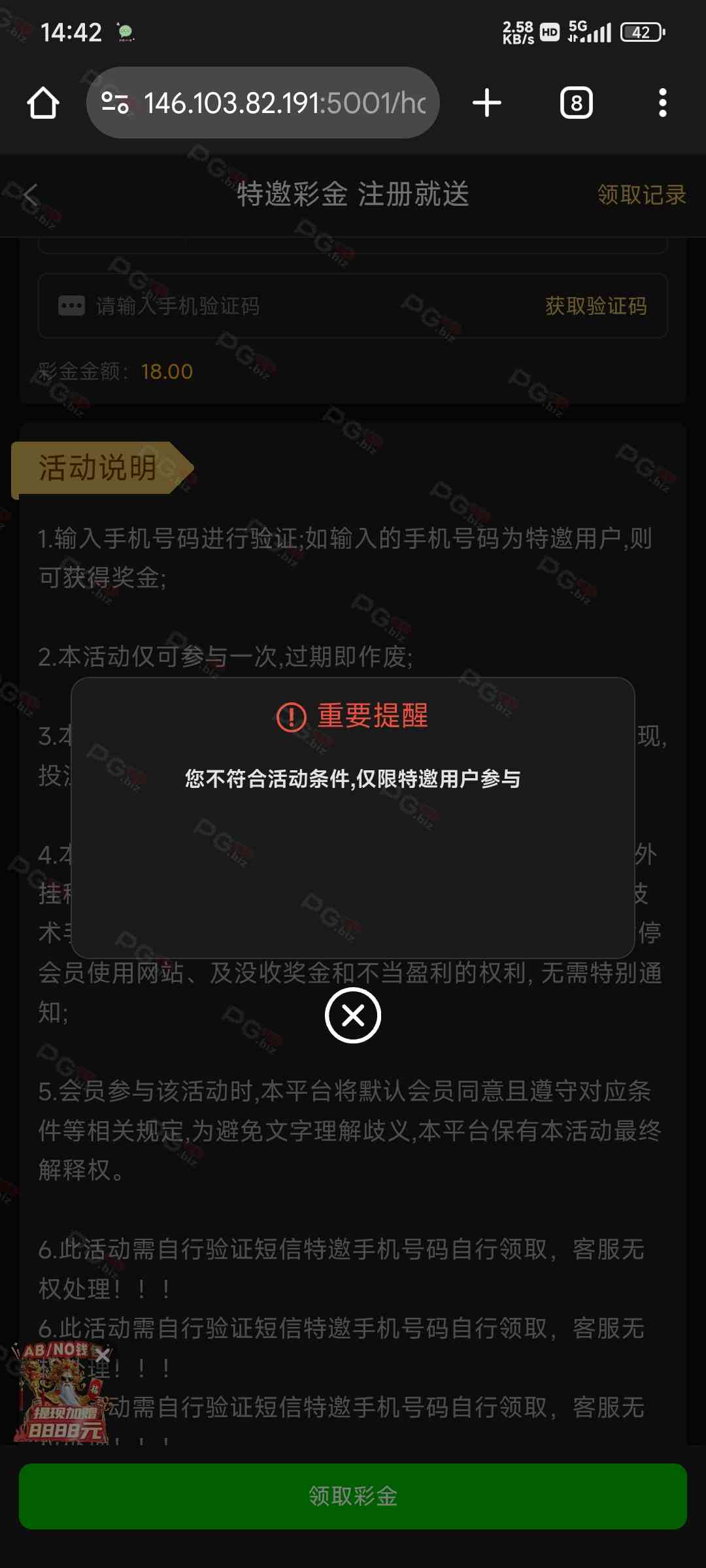 这台子,给我另一个手机号也发短信了,登上去注册,还是显示不是特邀,问客服客服直接结束会话,666