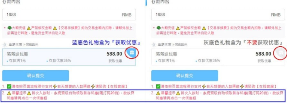1. 首存 35%,最高588,流水20倍(可不领取)