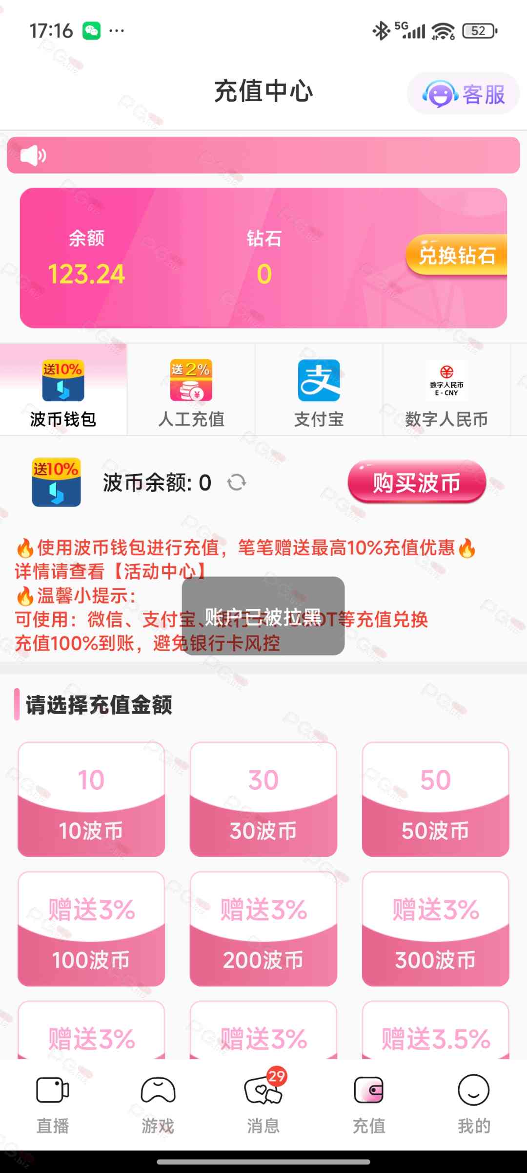 不出所料黑了,给你们一个建议,不能提的台打到500去找主播刷了返现,唉,我就是觉得我打不上500提一下试试结果秒黑给你们一个建议