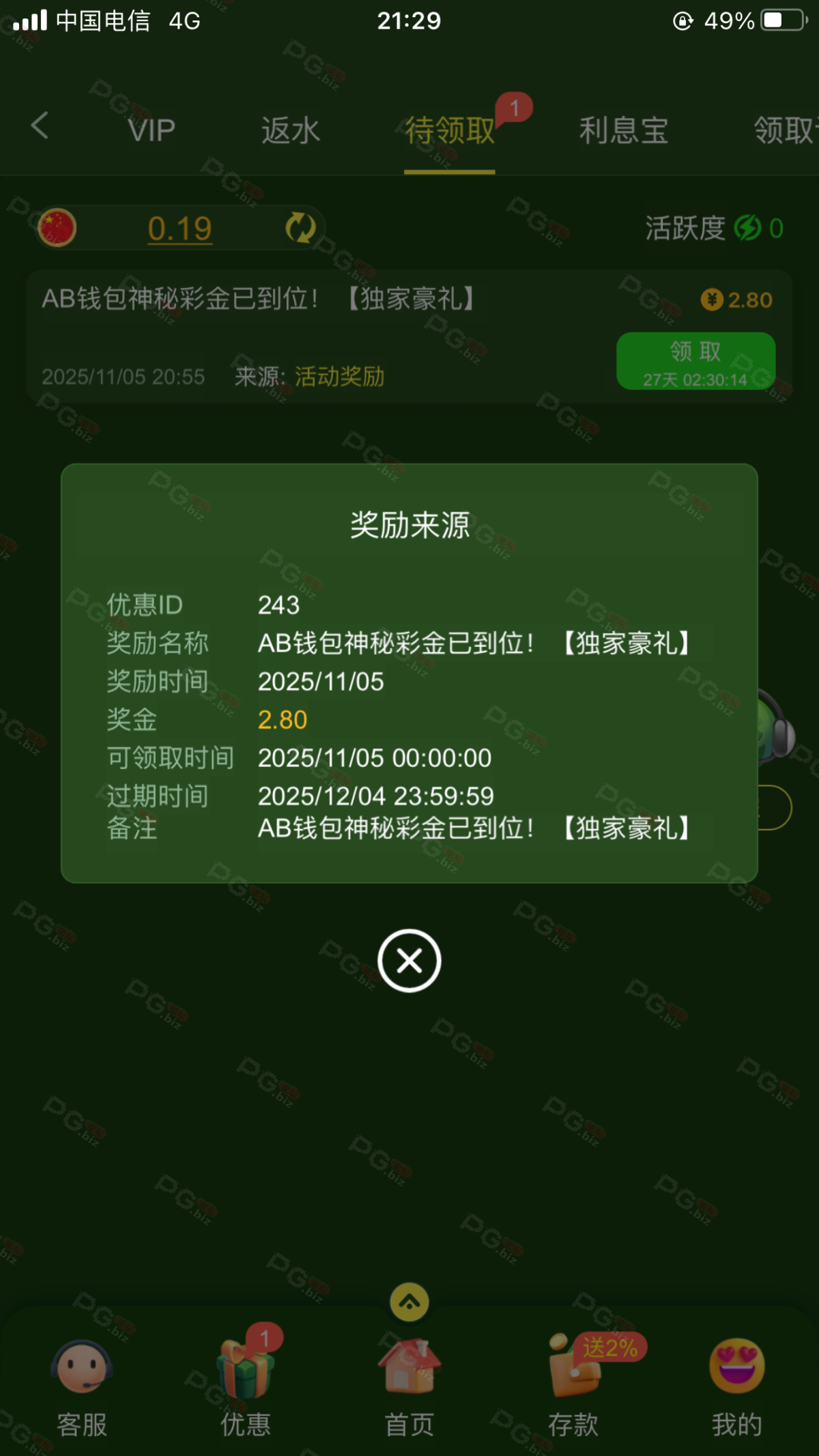 撸成功的老哥,请跟客服说您是从PG论坛 【PG.Biz】过来的。