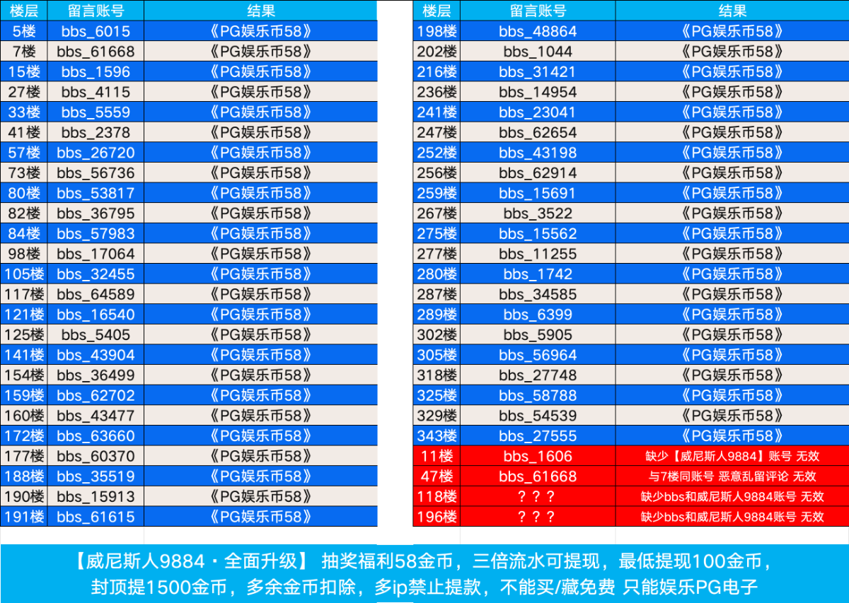 参加方式 : 评论区留言您的论坛PG娱乐账号 bbs_??? 与 9884账号