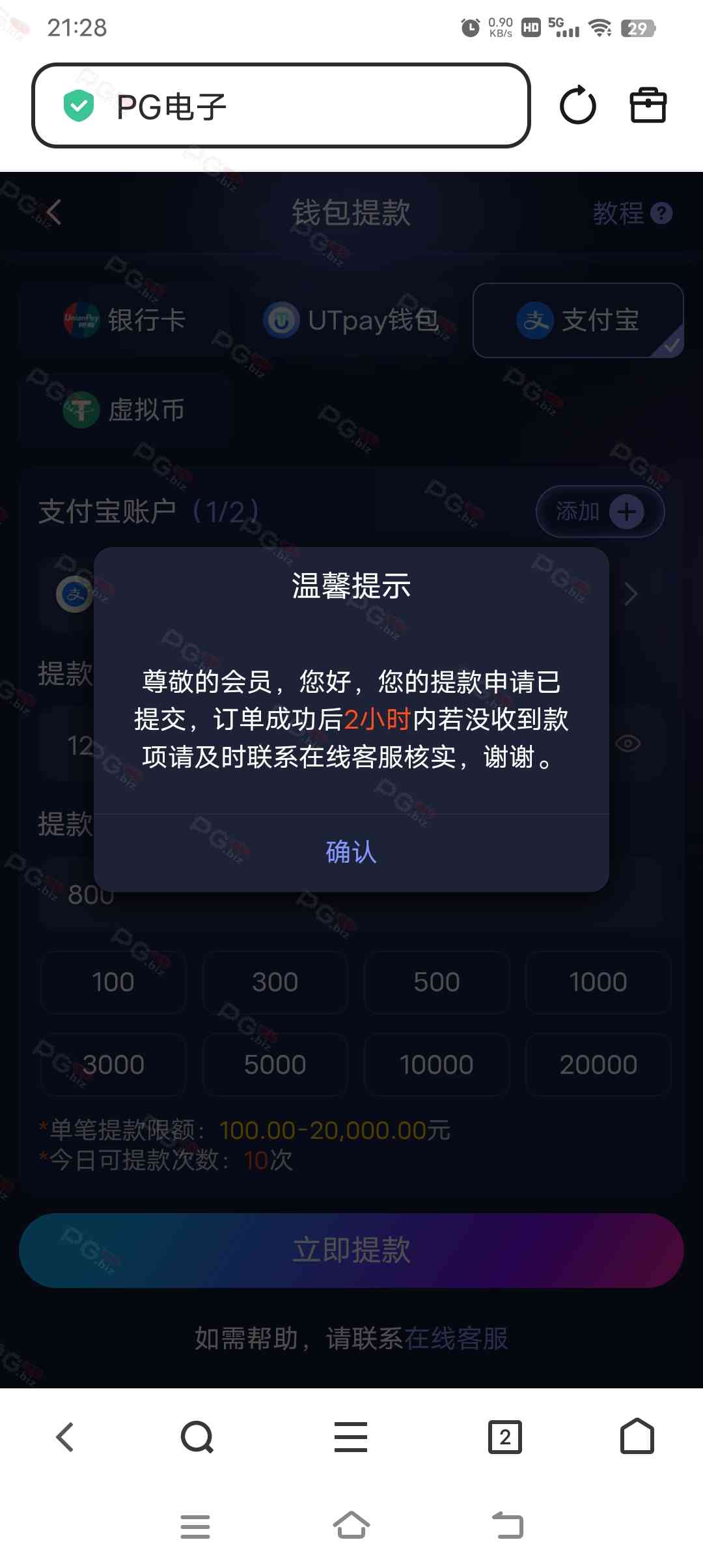 撸成功的老哥,请跟客服说您是从PG论坛 【PG.Biz】过来的。