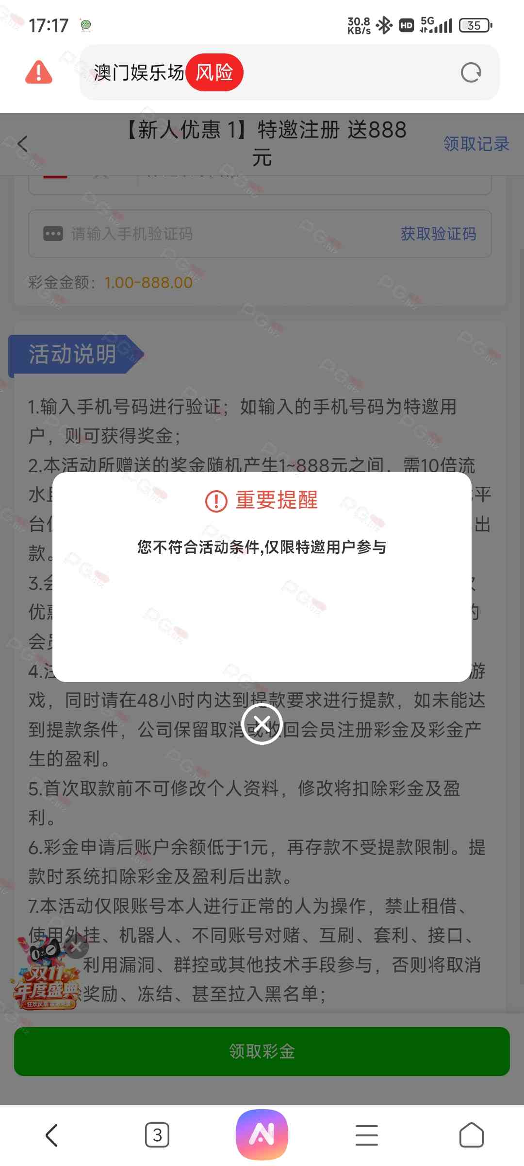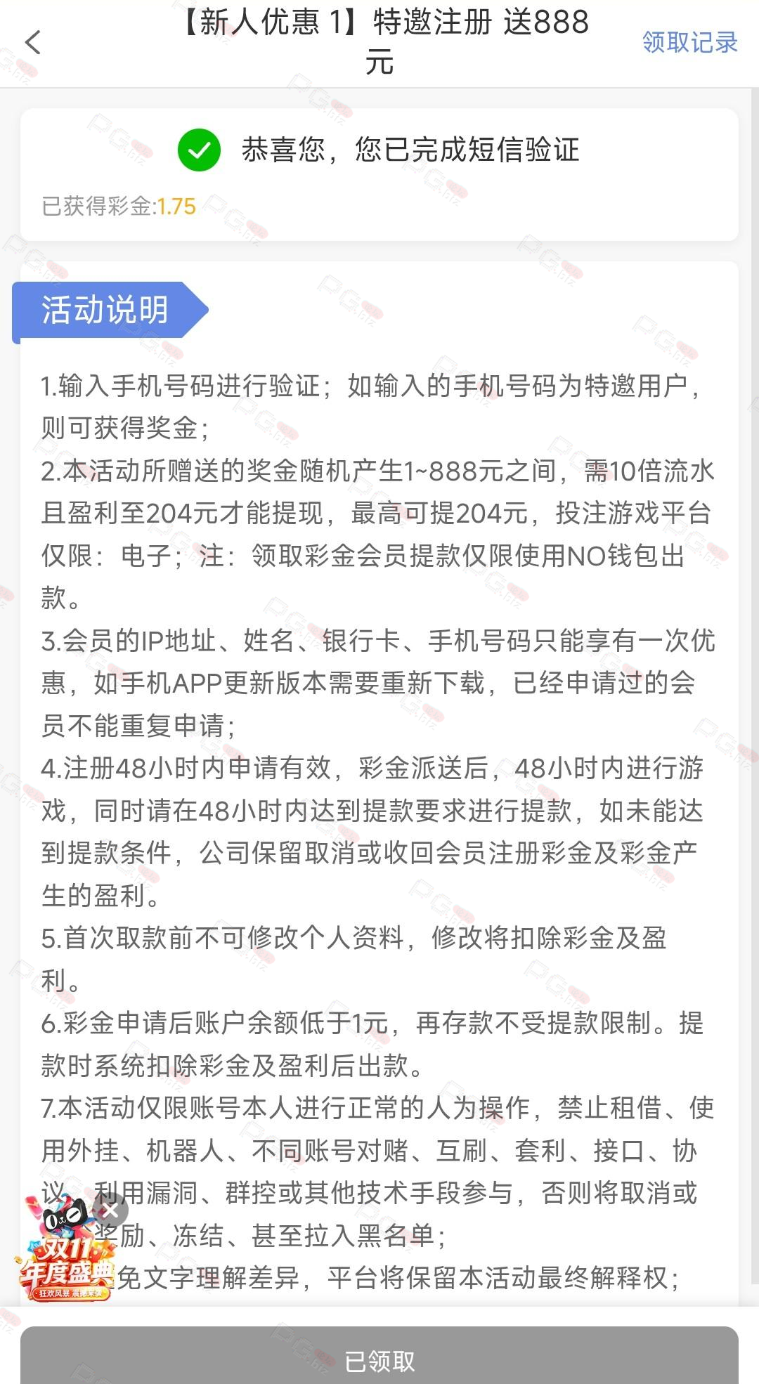 撸成功的老哥,请跟客服说您是从PG论坛 【PG.Biz】过来的。