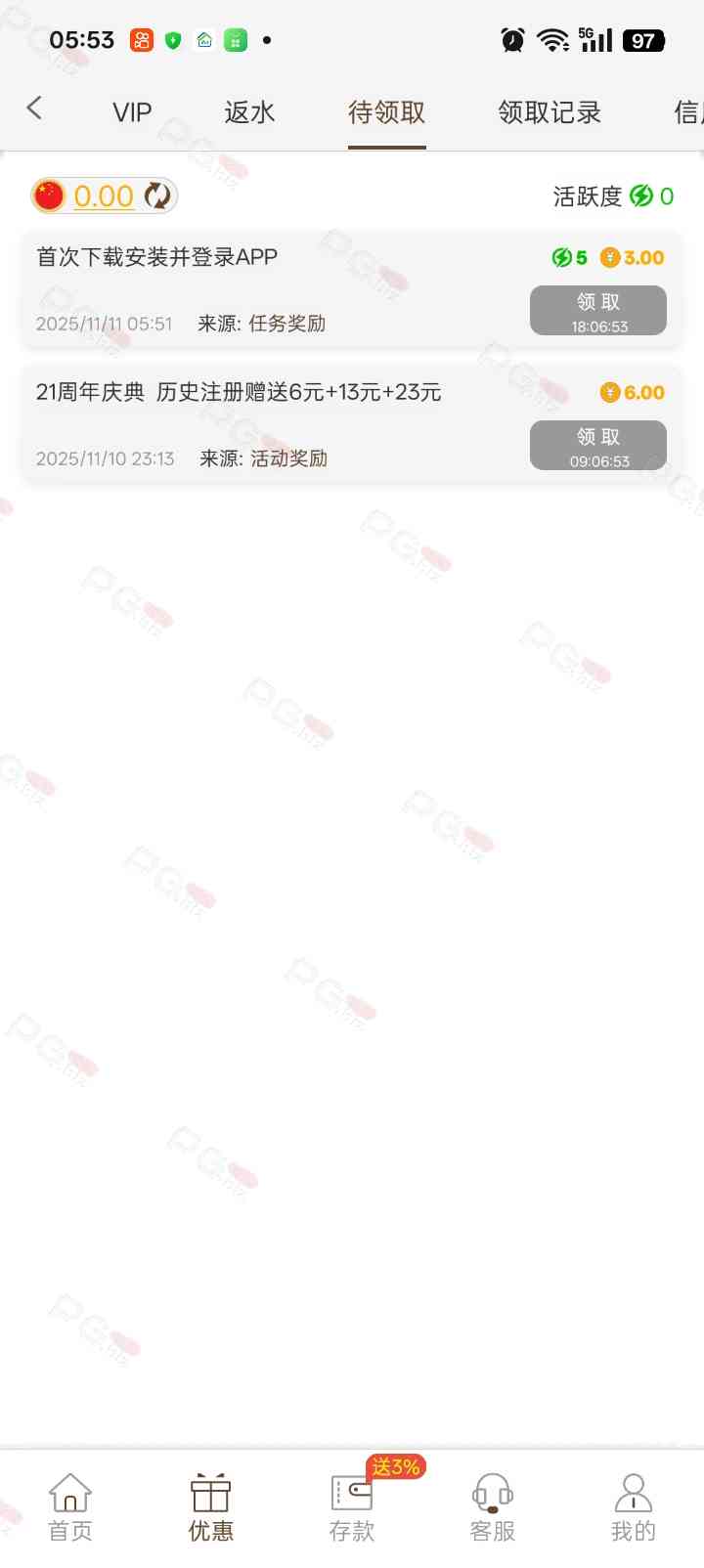 没有 可能没冲的晚点给吧