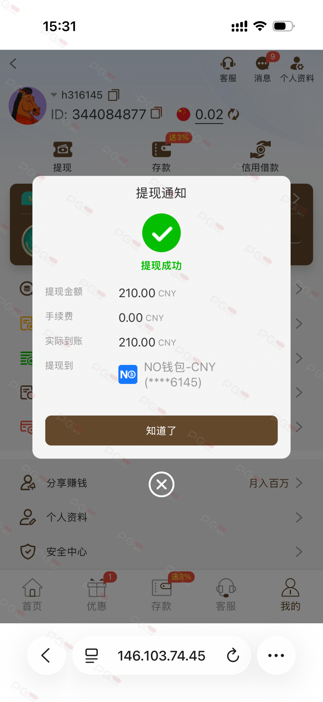撸成功的老哥,请跟客服说您是从PG论坛 【PG.Biz】过来的。