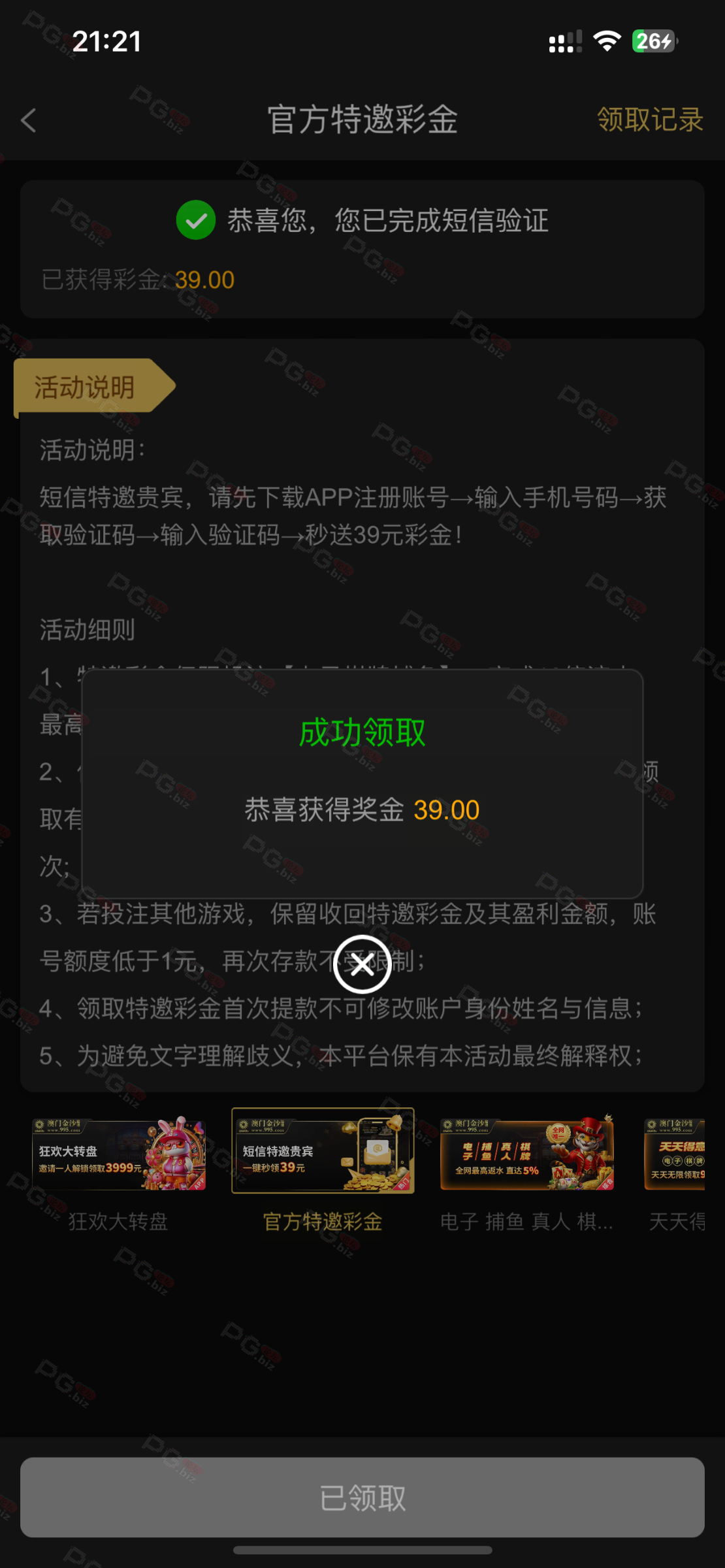 撸成功的老哥,请跟客服说您是从PG论坛 【PG.Biz】过来的。