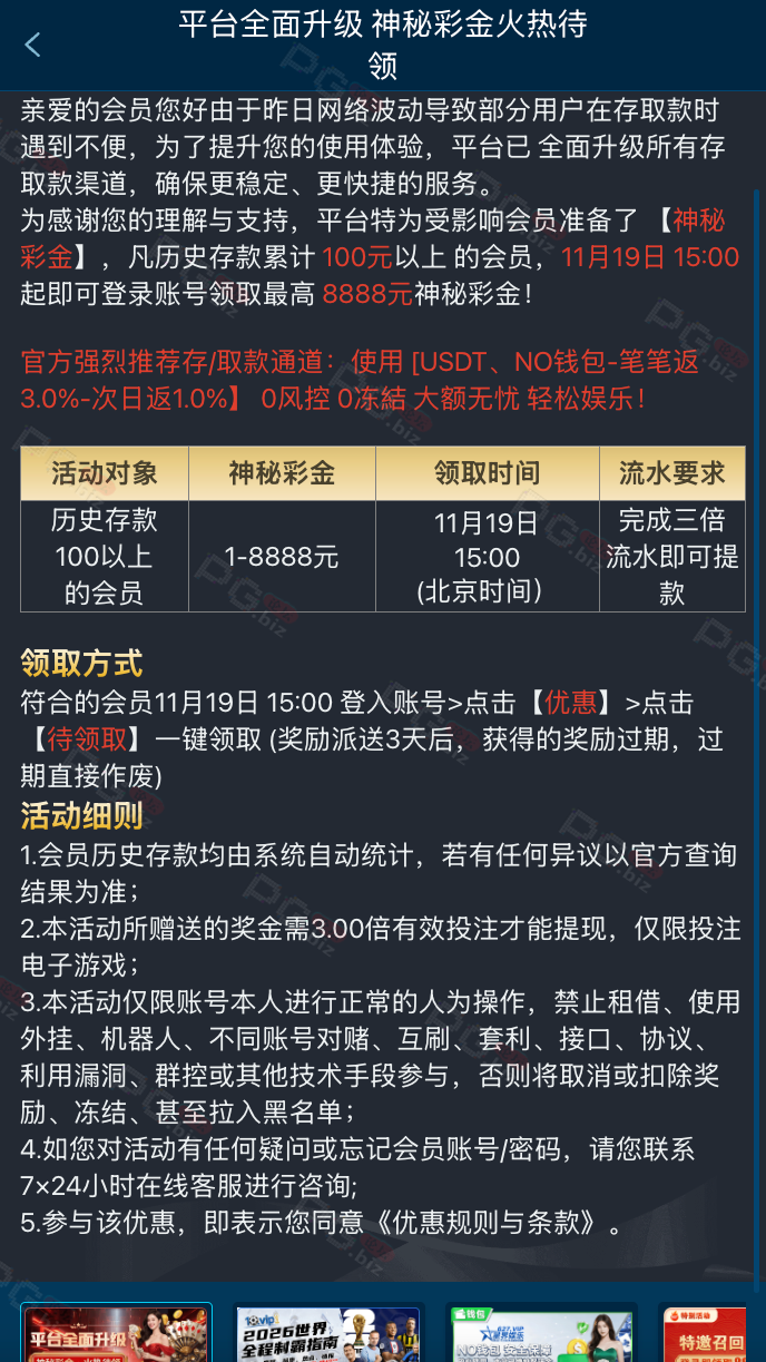 撸成功的老哥,请跟客服说您是从PG论坛 【PG.Biz】过来的。