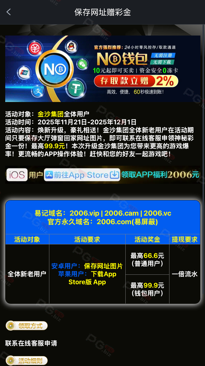 撸成功的老哥,请跟客服说您是从PG论坛 【PG.Biz】过来的。