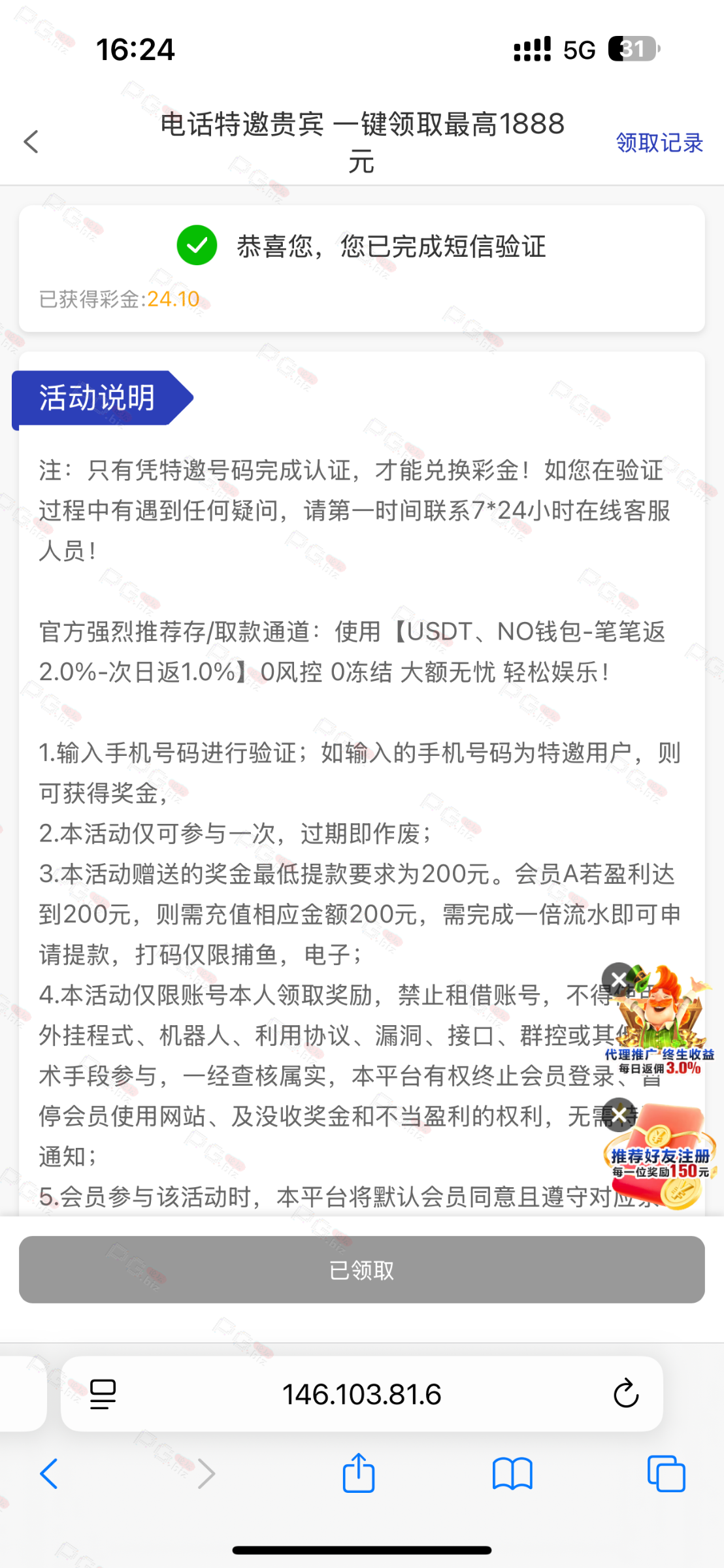 撸成功的老哥,请跟客服说您是从PG论坛 【PG.Biz】过来的。