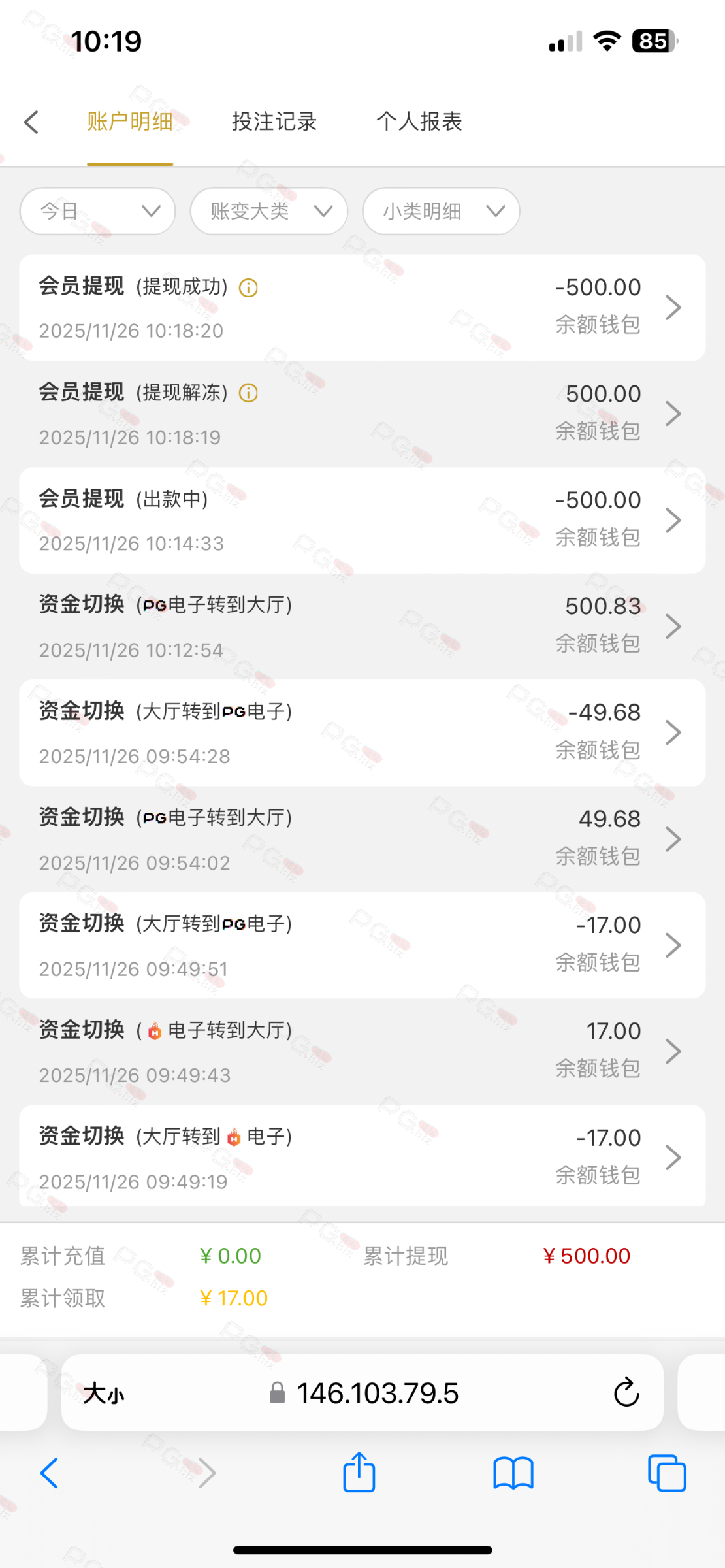 得吃500。大水,一直进胡都是几百倍。打到1000多怕白嫖提不了。日了狗。后面故意输剩500!