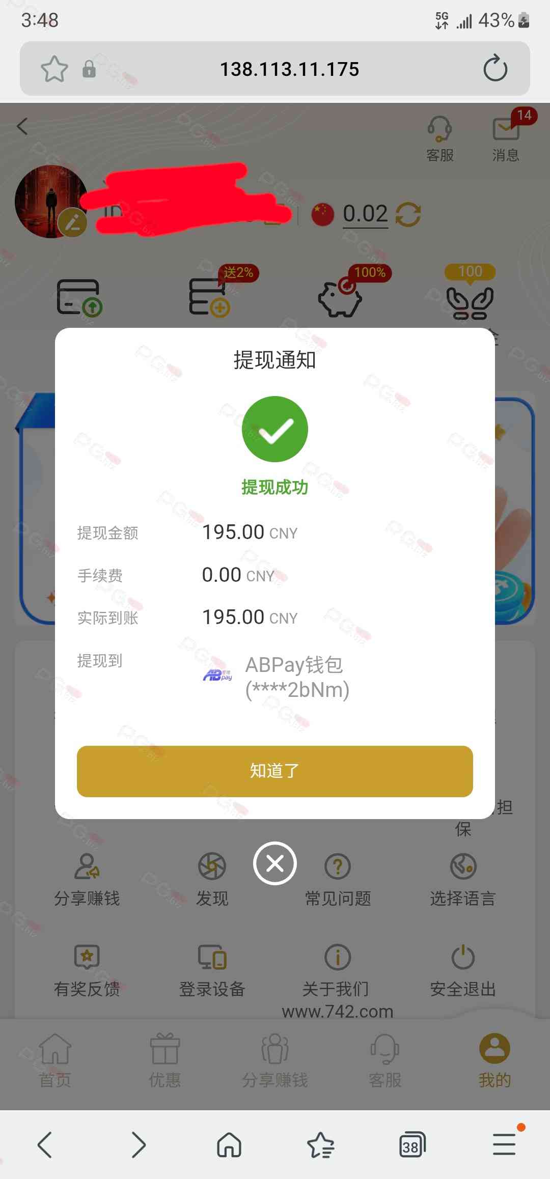 撸成功的老哥,请跟客服说您是从PG论坛 【PG.Biz】过来的。