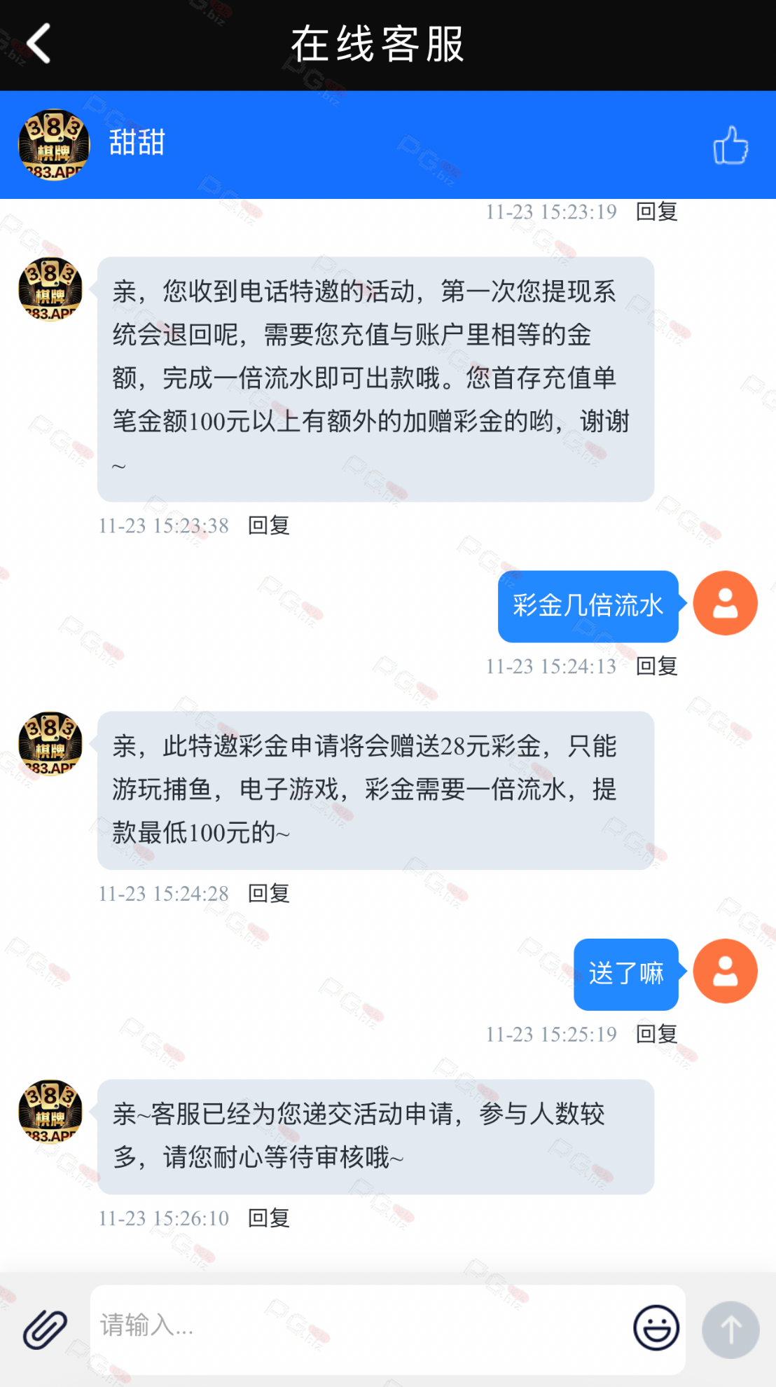 撸成功的老哥,请跟客服说您是从PG论坛 【PG.Biz】过来的。