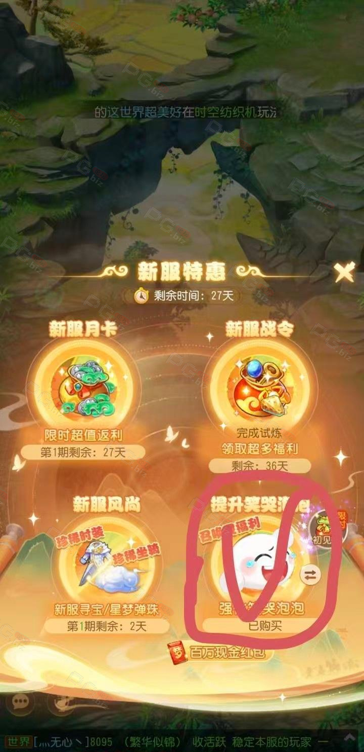 (没买那个泡泡会显示有旁边返现19.8,买了就可以领取)