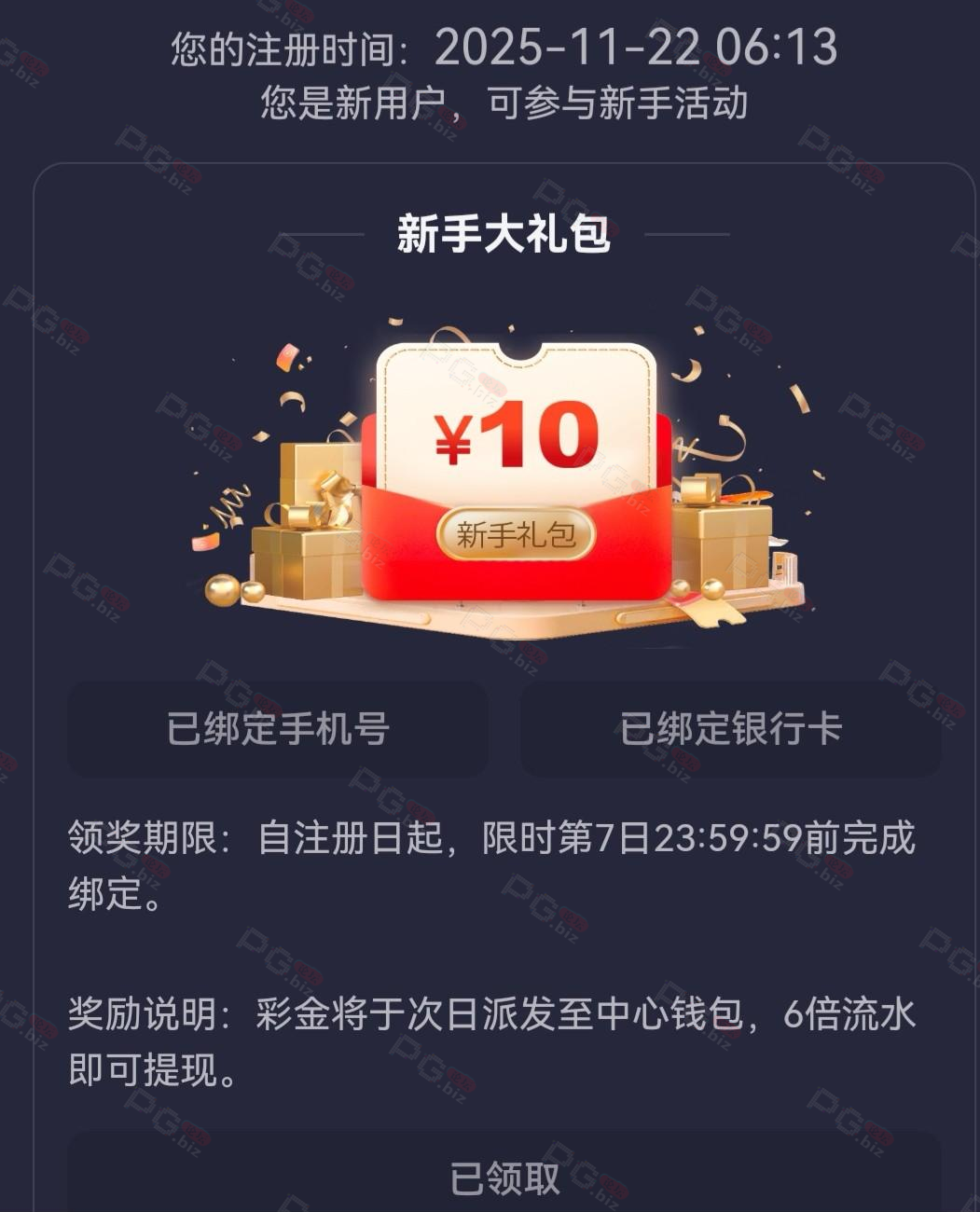 撸成功的老哥,请跟客服说您是从PG论坛 【PG.Biz】过来的。