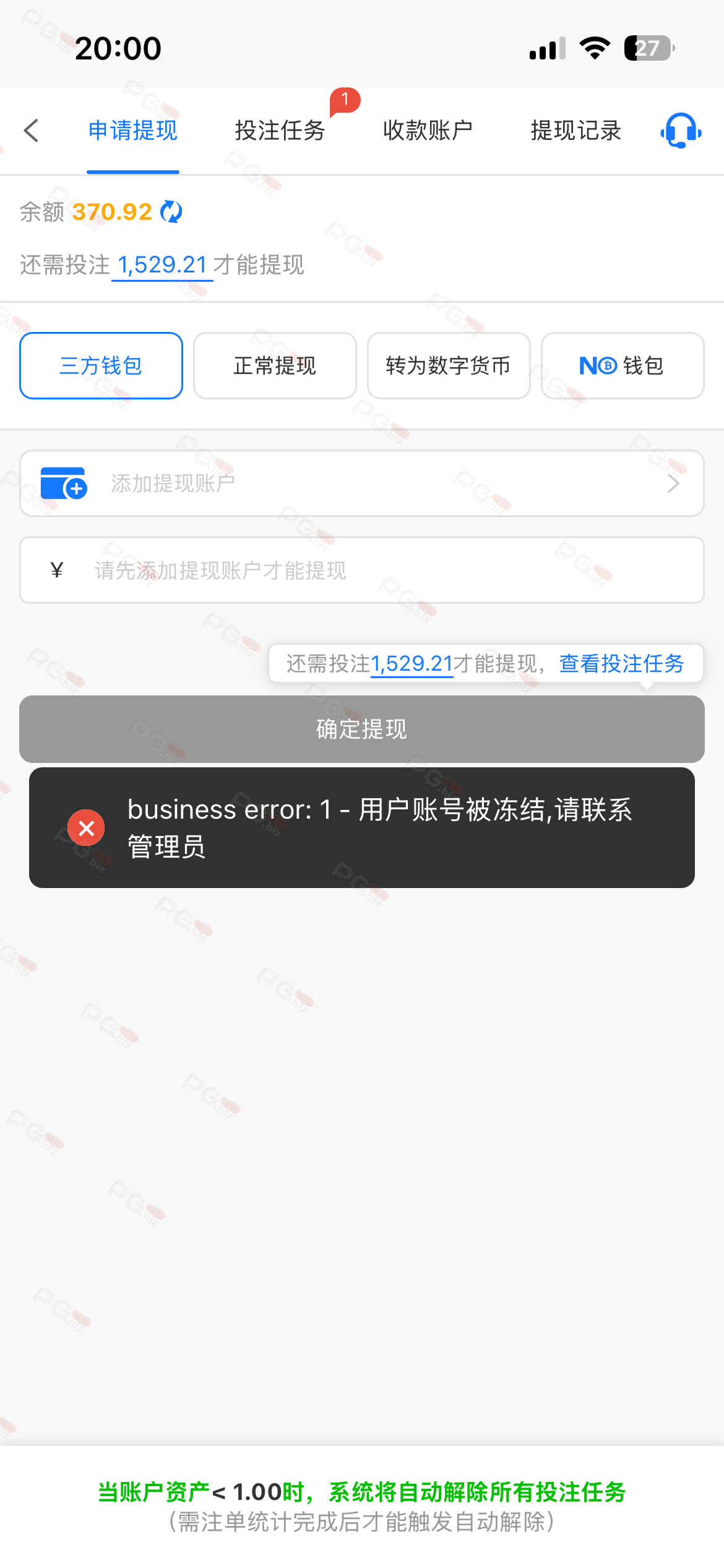 打电话来说冲100+100打八倍流水 都还没打够流水还没提现就拉黑了 说我套利 我就打pg wg怎么套