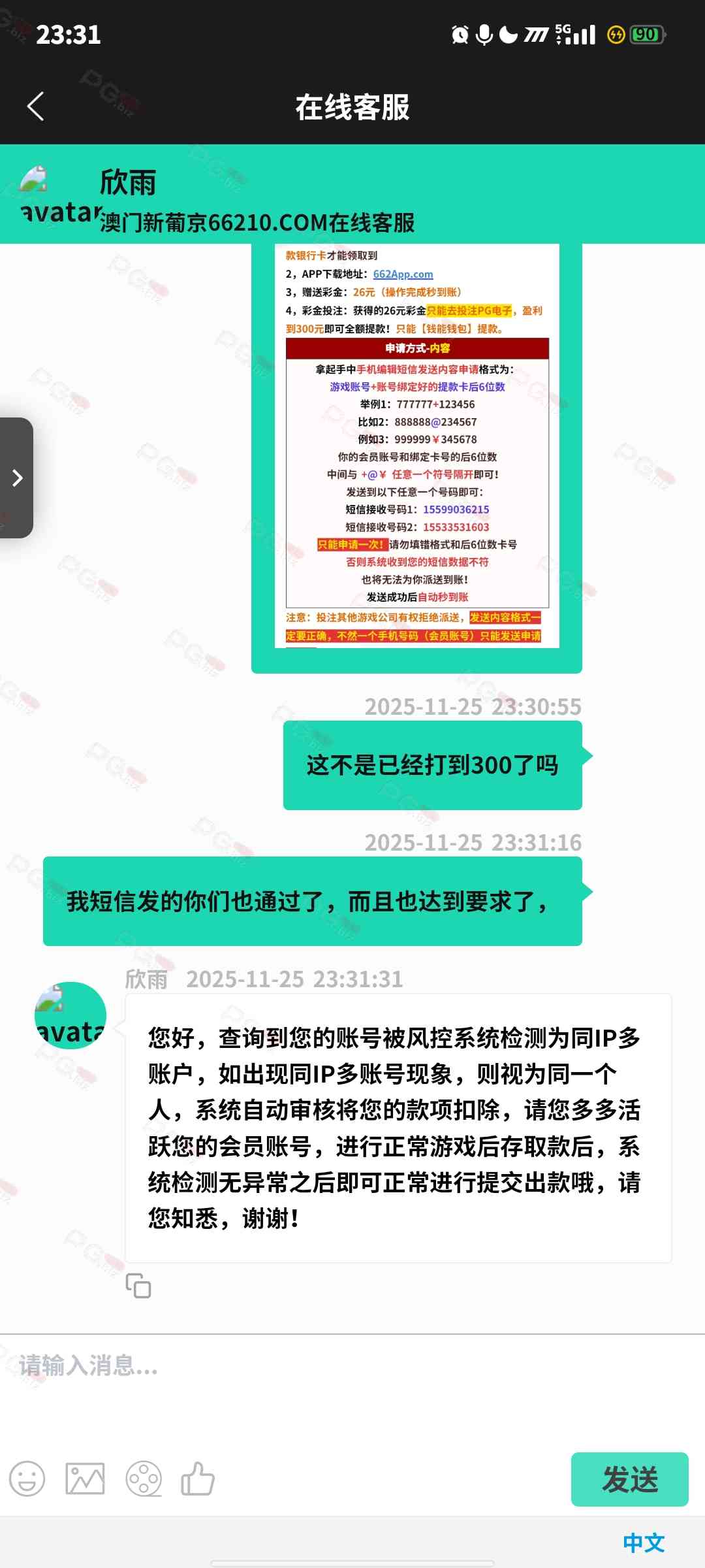 黑逼玩不起送的26短信彩金打到343提款扣除余额,说多IP,谁玩谁倒霉,有钱你就玩吧