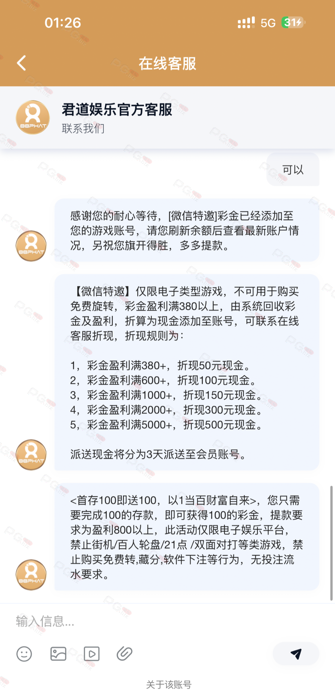 撸成功的老哥,请跟客服说您是从PG论坛 【PG.Biz】过来的。