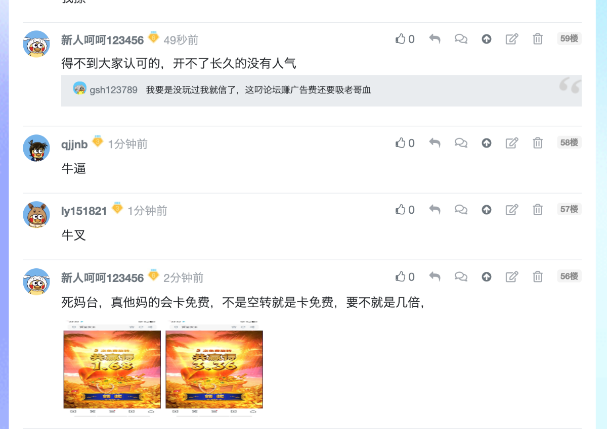 论坛的广告平台基本上就是注册前面几天得吃后面容易gg 克制好自己就行 不要输了就哔哔赖赖没人强迫玩