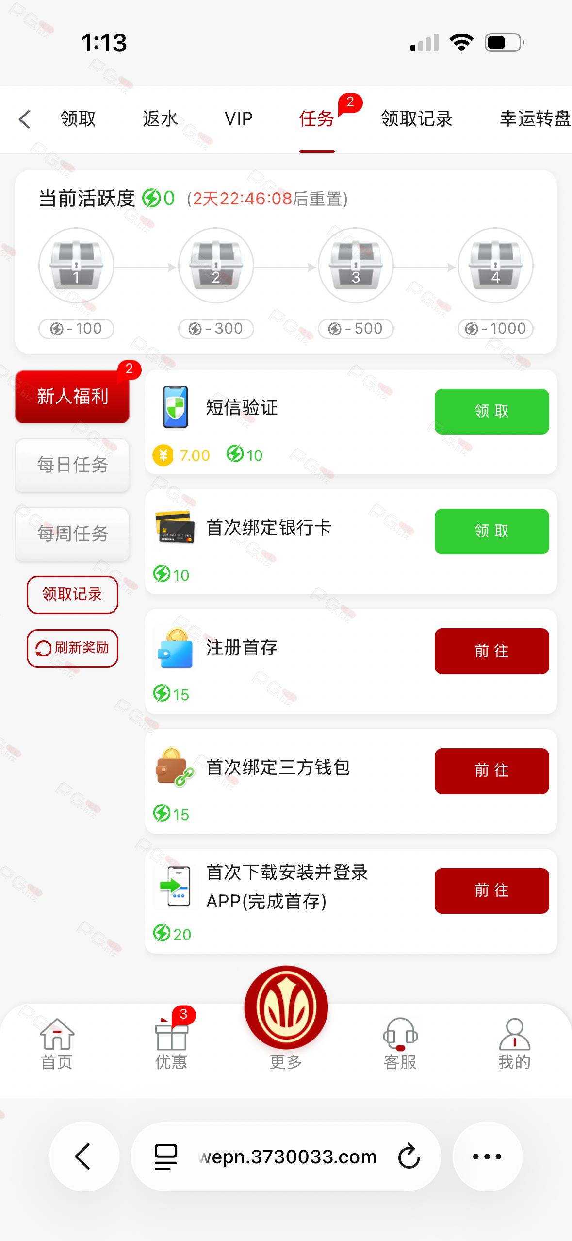 打到五十 去玩真人上到三百 任务那里没写有限制游戏 去优惠那里看天塌了 只能玩PG 然后藏了三个免费 刚好k豆有二十冲进去
