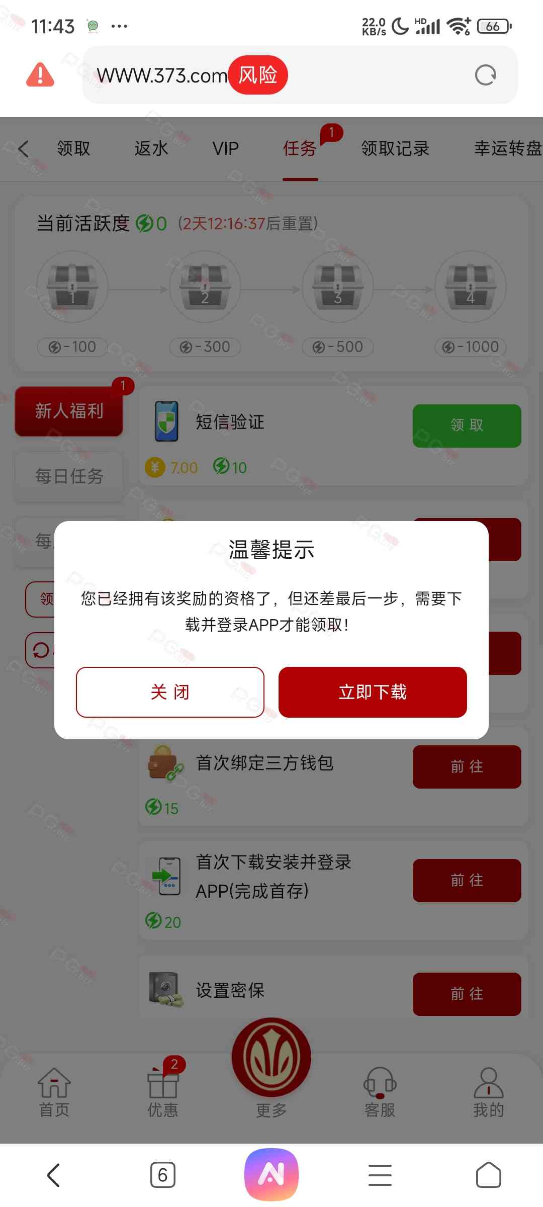 伞兵一号 打到五十 去玩真人上到三百 任务那里没写有限制游戏 去优惠那里看天塌了 只能玩PG 然后藏了三个免费 刚好k豆有二十冲进去