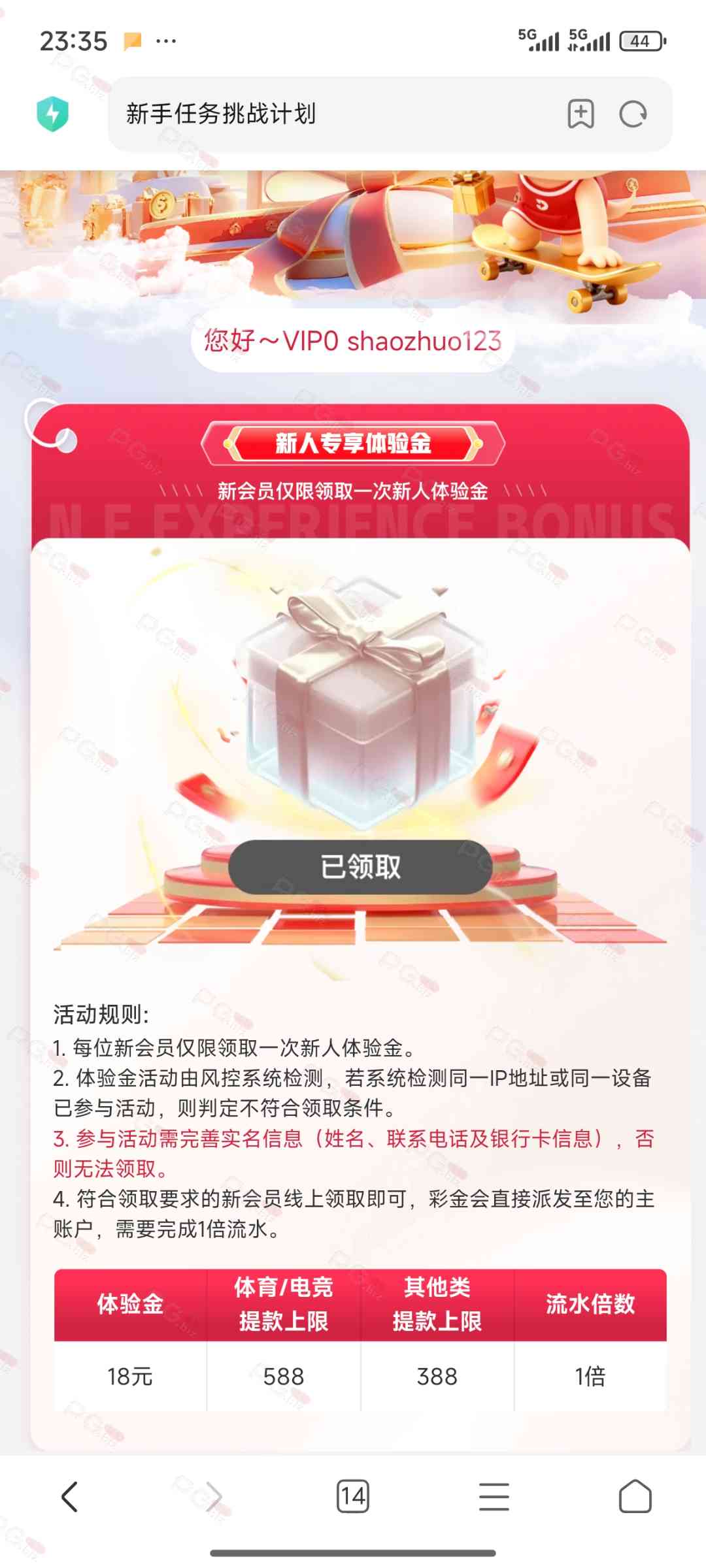 撸成功的老哥,请跟客服说您是从PG论坛 【PG.Biz】过来的。