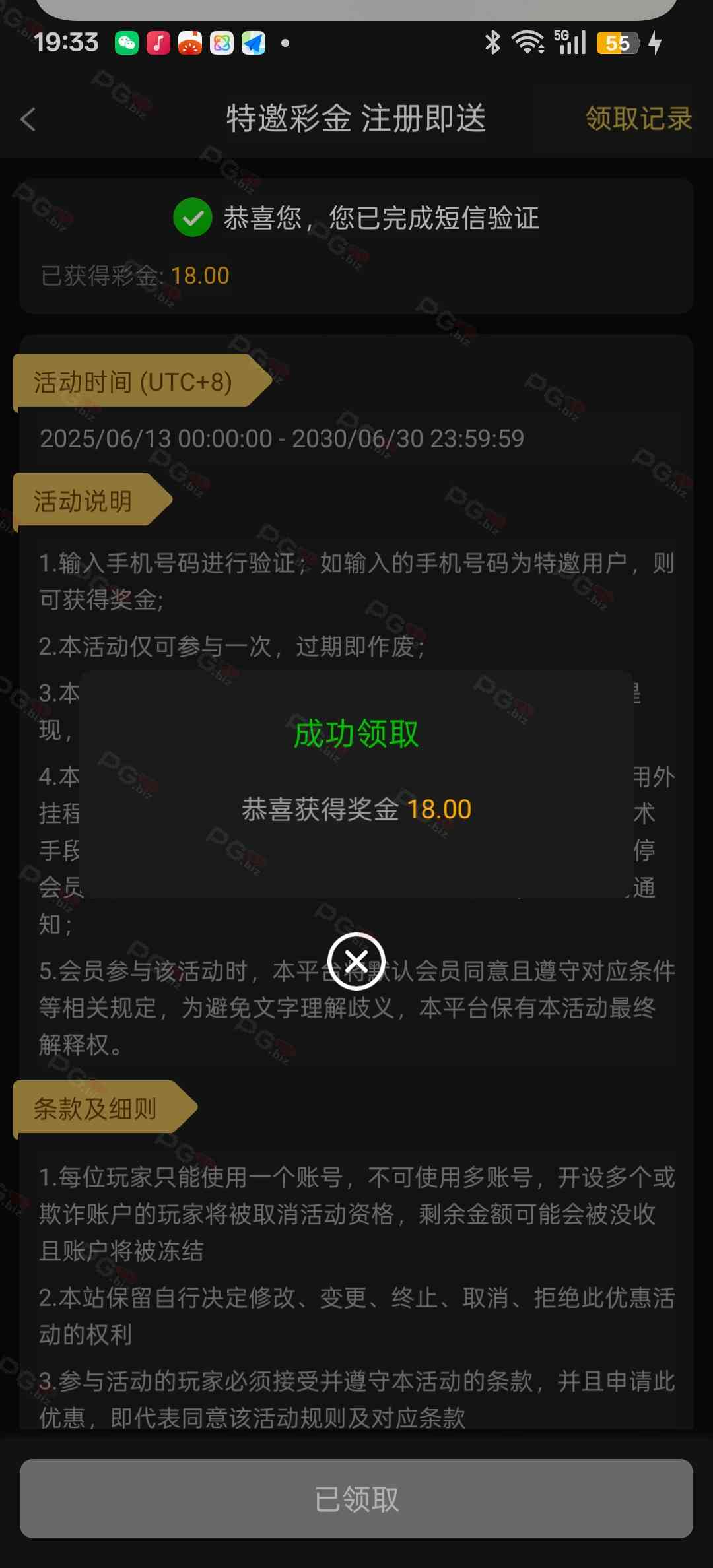 撸成功的老哥,请跟客服说您是从PG论坛 【PG.Biz】过来的。