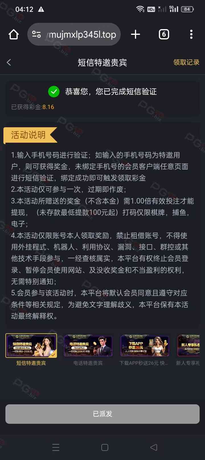 撸成功的老哥,请跟客服说您是从PG论坛 【PG.Biz】过来的。