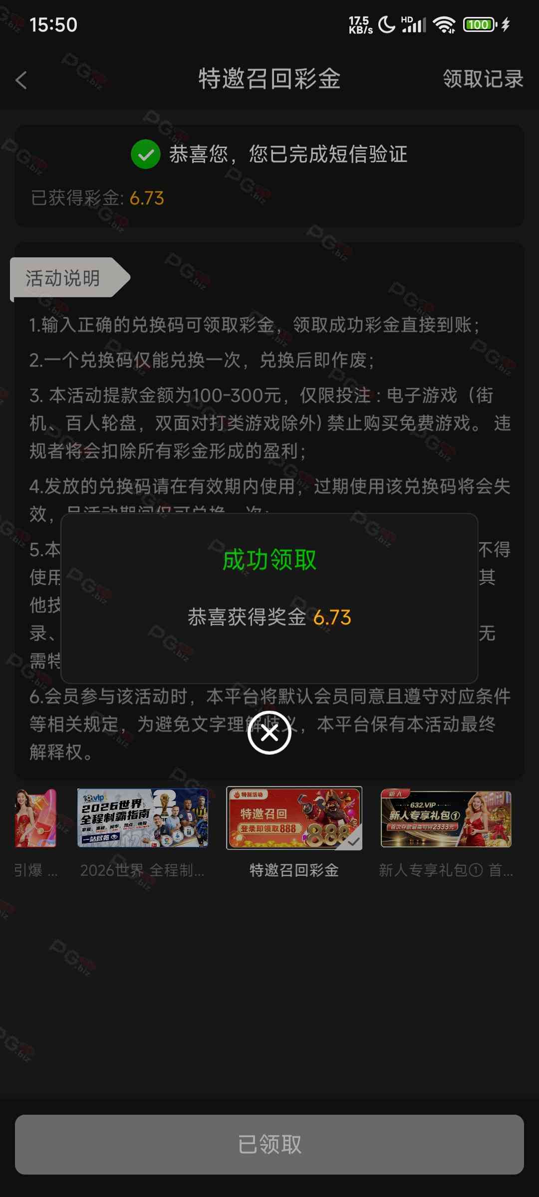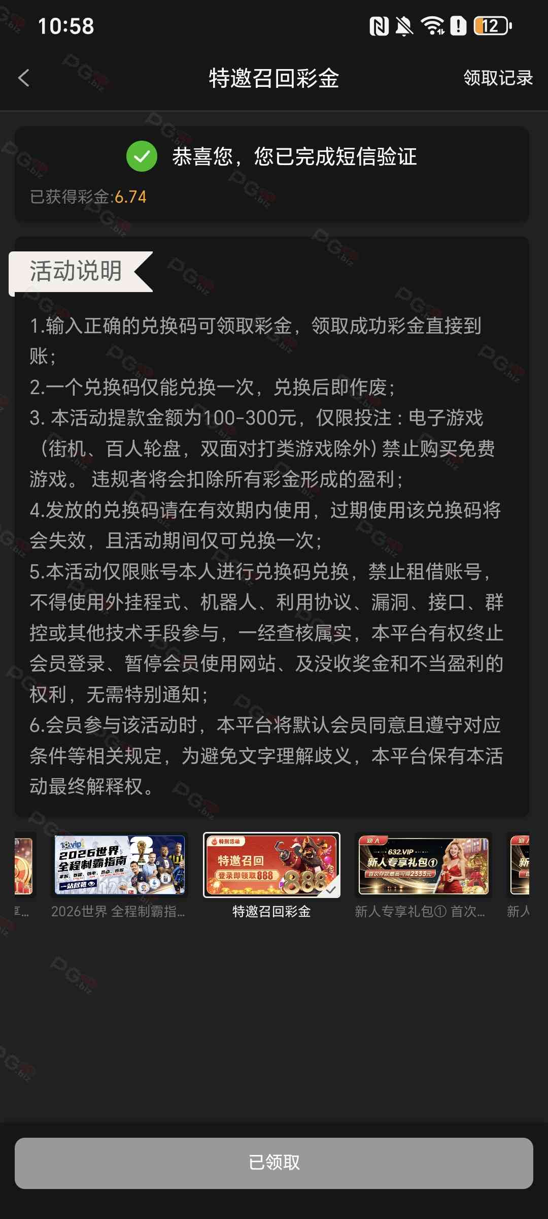 撸成功的老哥,请跟客服说您是从PG论坛 【PG.Biz】过来的。