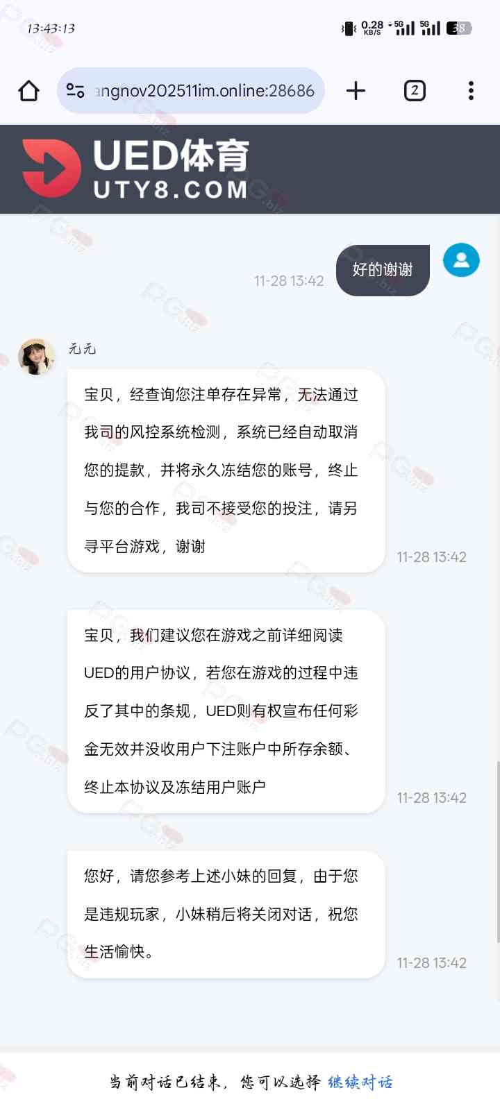 刚才看见的,我说去玩会,领了18,前面玩了会没水,后面换到了老虎争霸里面,几块钱直接上了112,后面就说提现,等了20分钟吧差不多,都没有说显示到账,后面下了APP登录以后才发现账号被禁用了,理由就是注单异常,然后还强制性的关闭聊天,垃圾平台,当欢乐豆玩吧,虽然我没充钱,嘿嘿