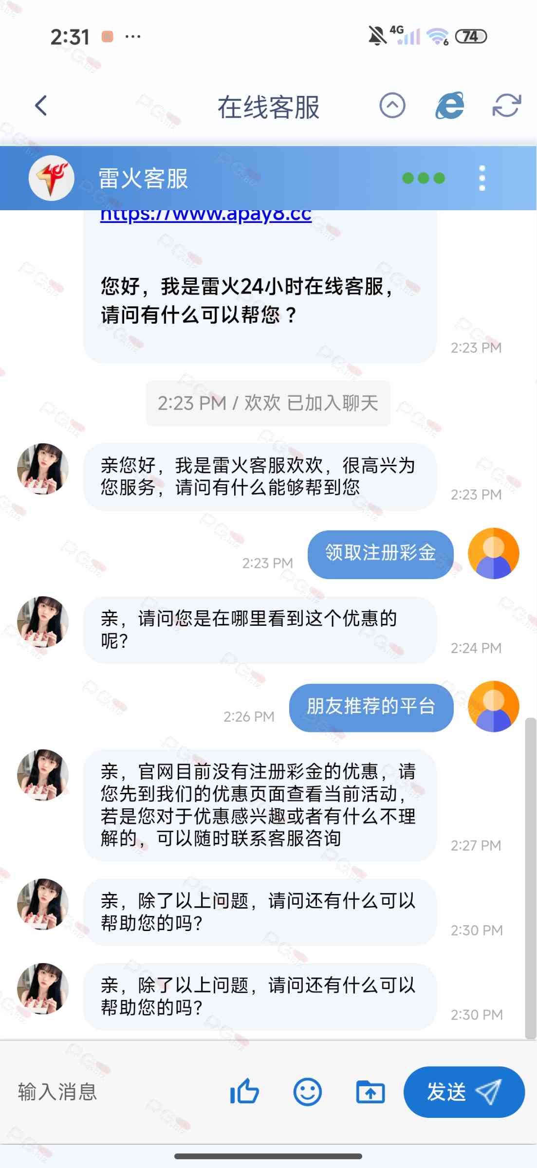撸成功的老哥,请跟客服说您是从PG论坛 【PG.Biz】过来的。