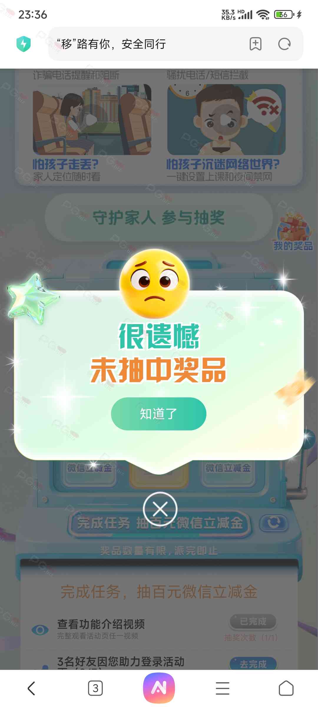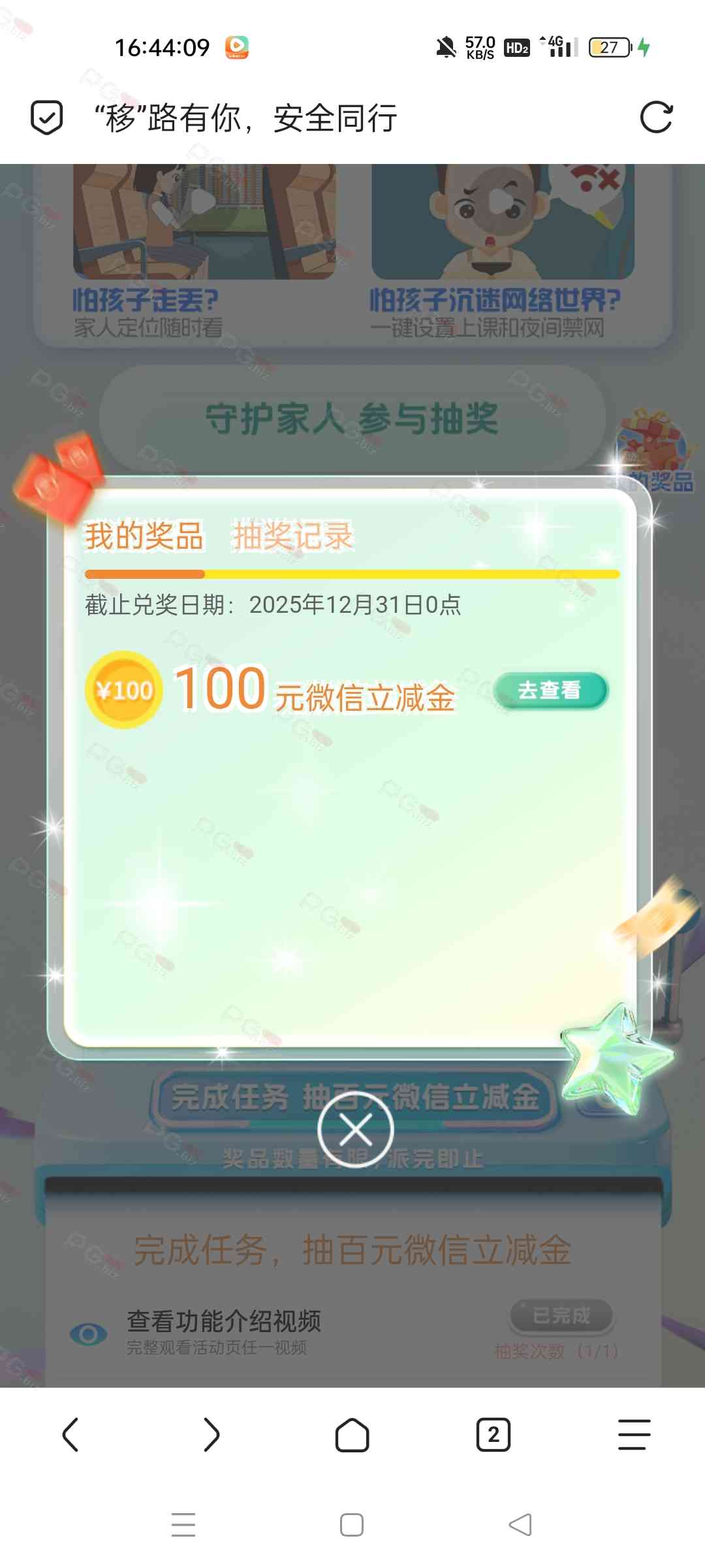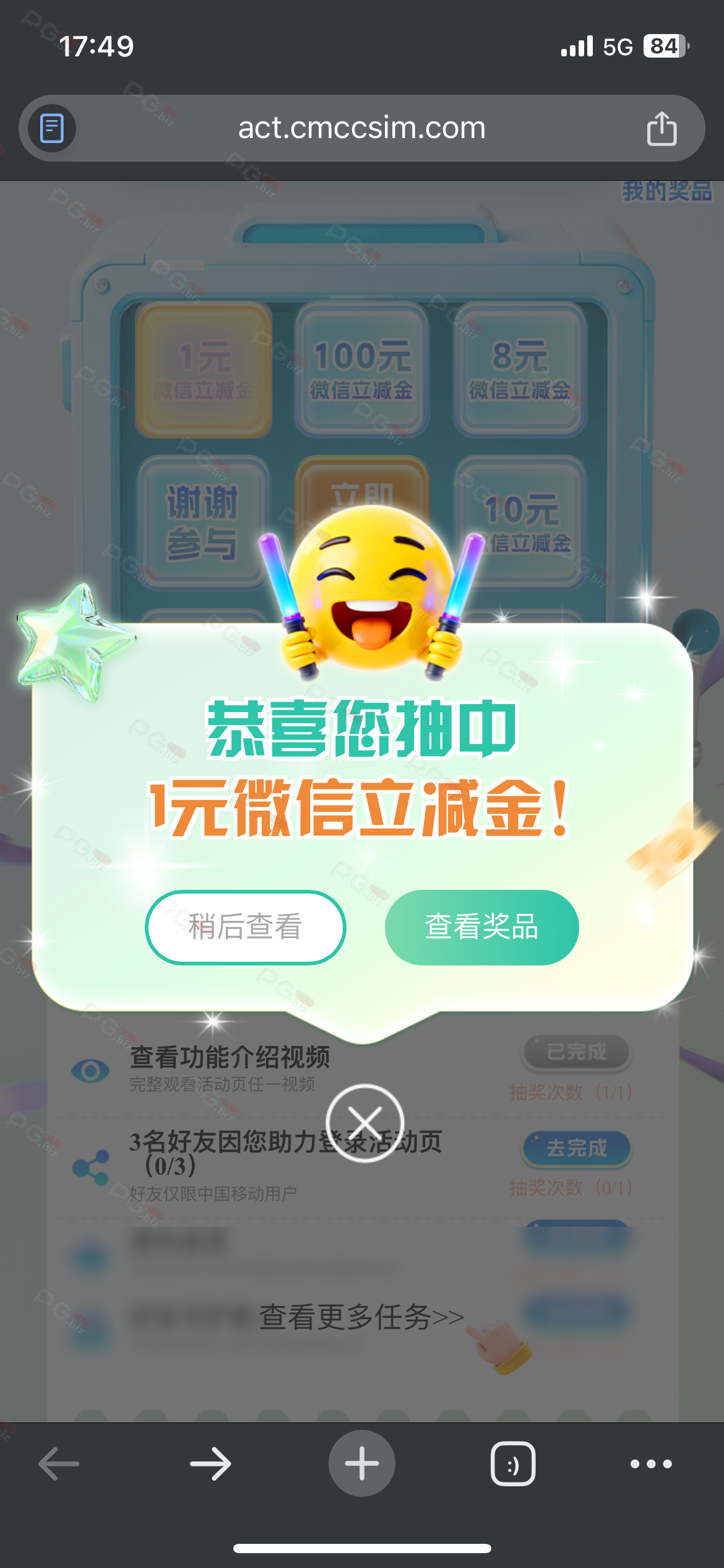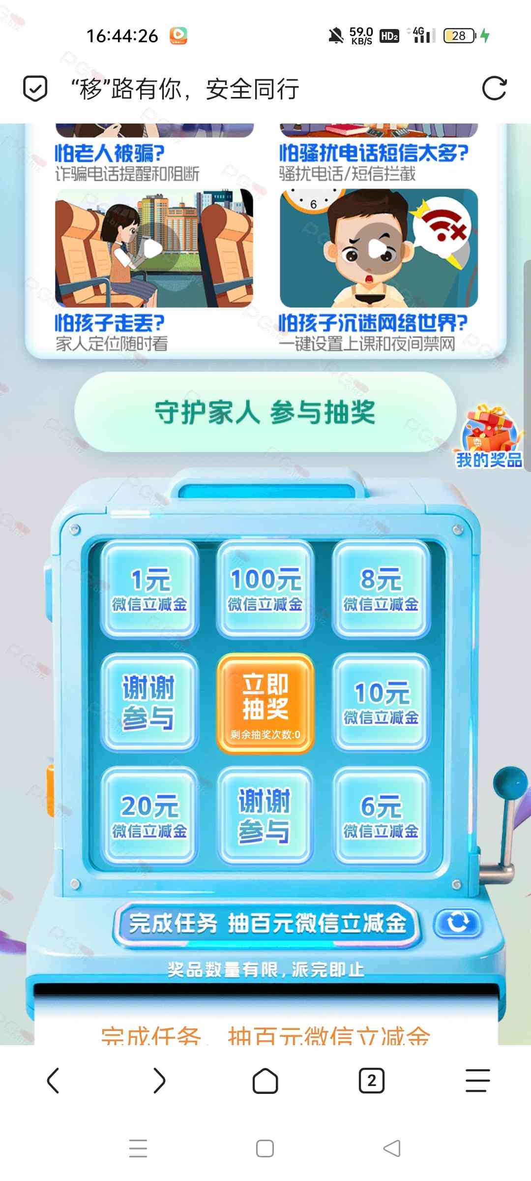 进去登录,看视频后有一次抽奖机会,直接抽,不必中,现在有水,我刚抽中100中国移动立减金