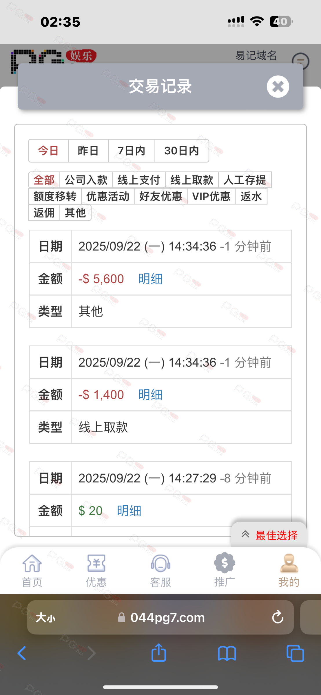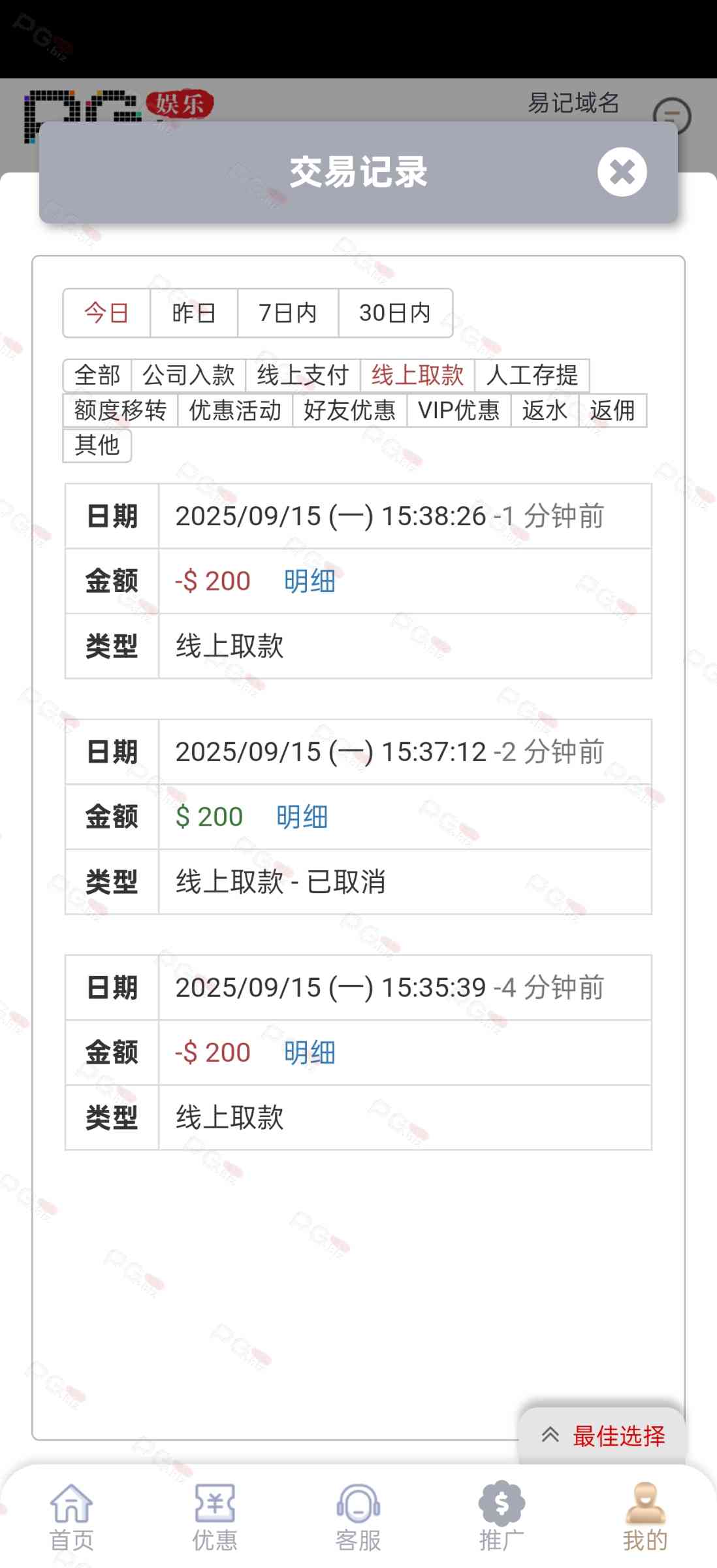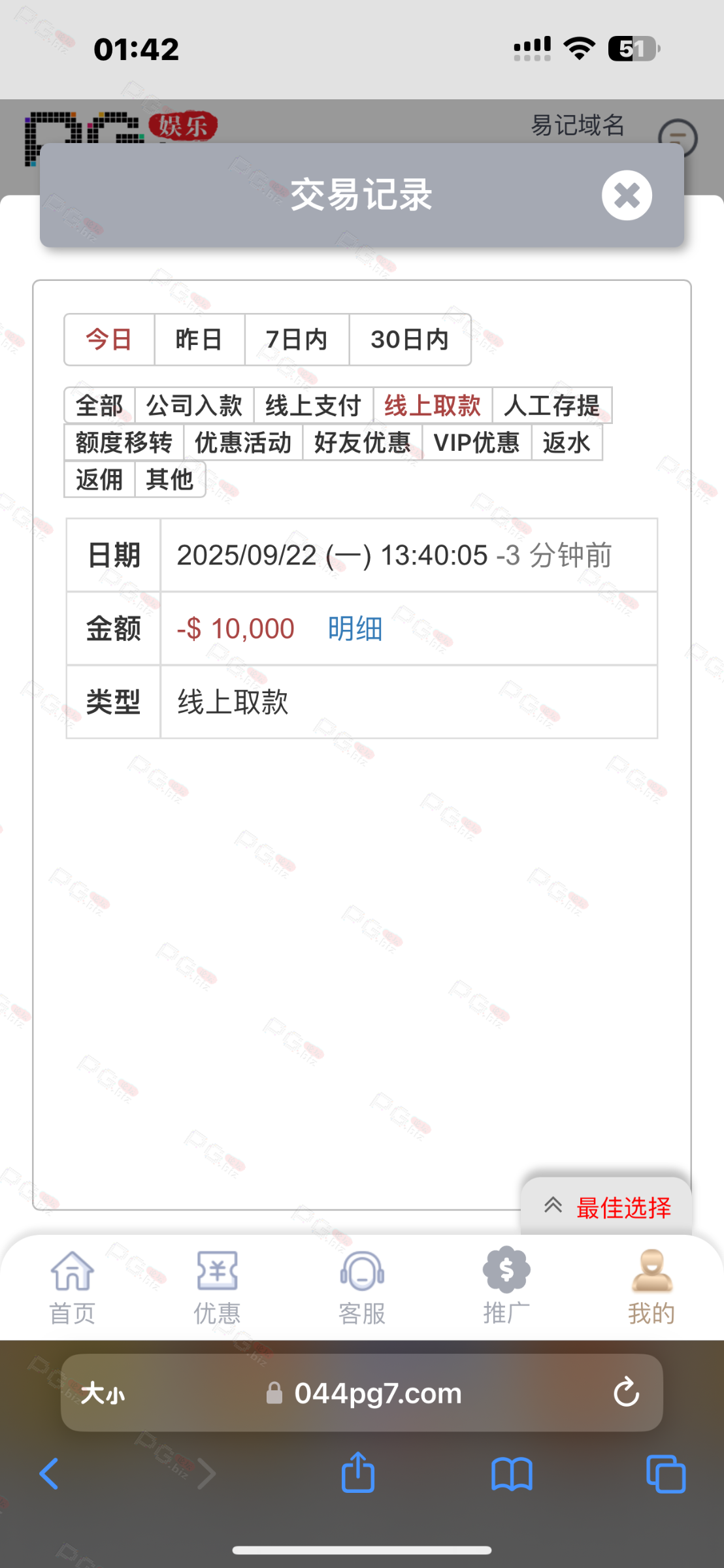 撸成功的老哥,请跟客服说您是从PG论坛 【PG.Biz】过来的。