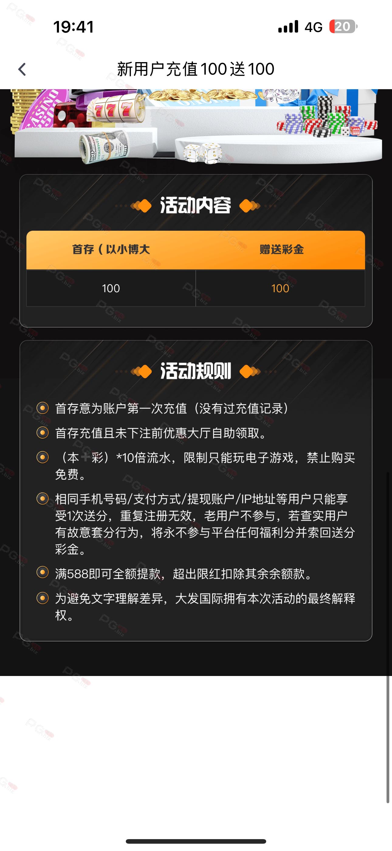 撸成功的老哥,请跟客服说您是从PG论坛 【PG.Biz】过来的。