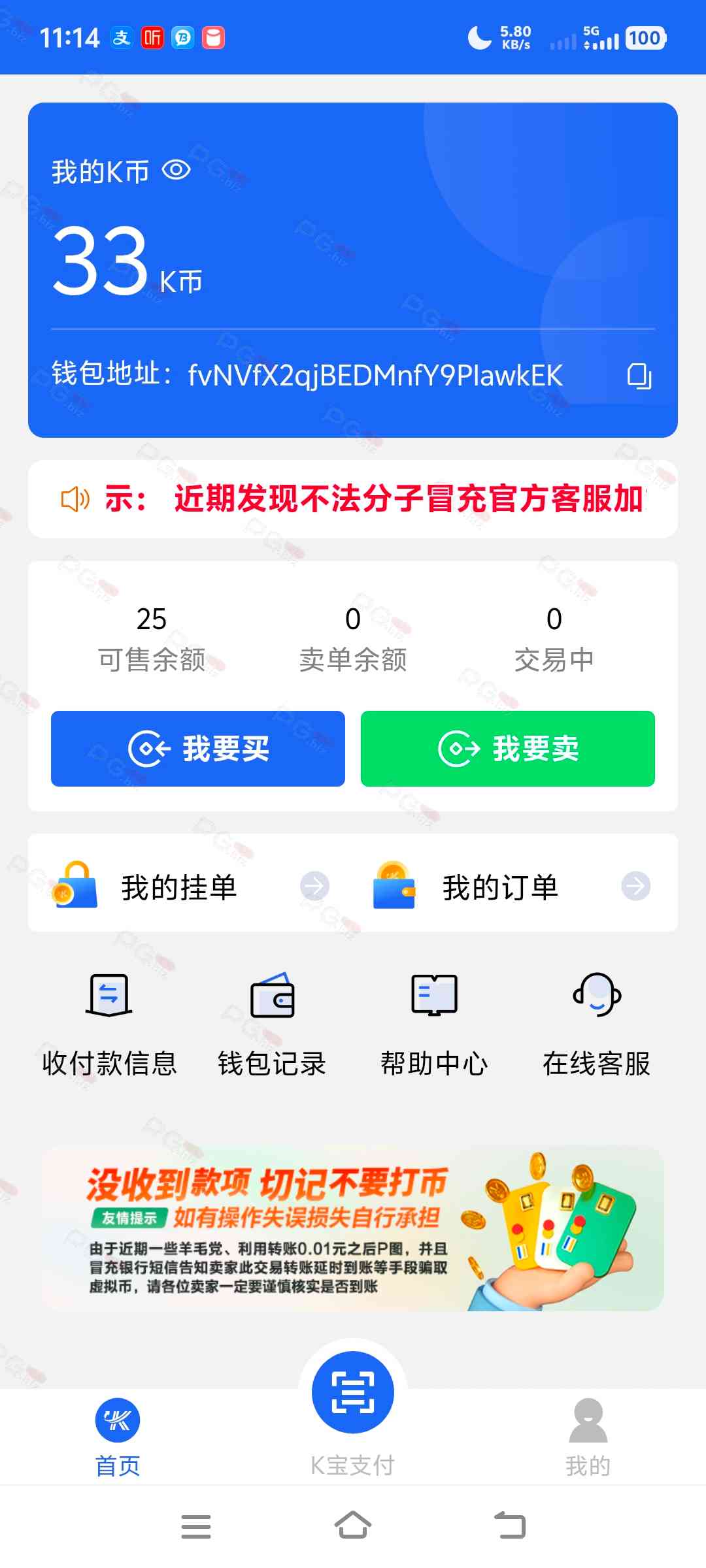 支付方式 :钱能或者K宝,没其他方式
