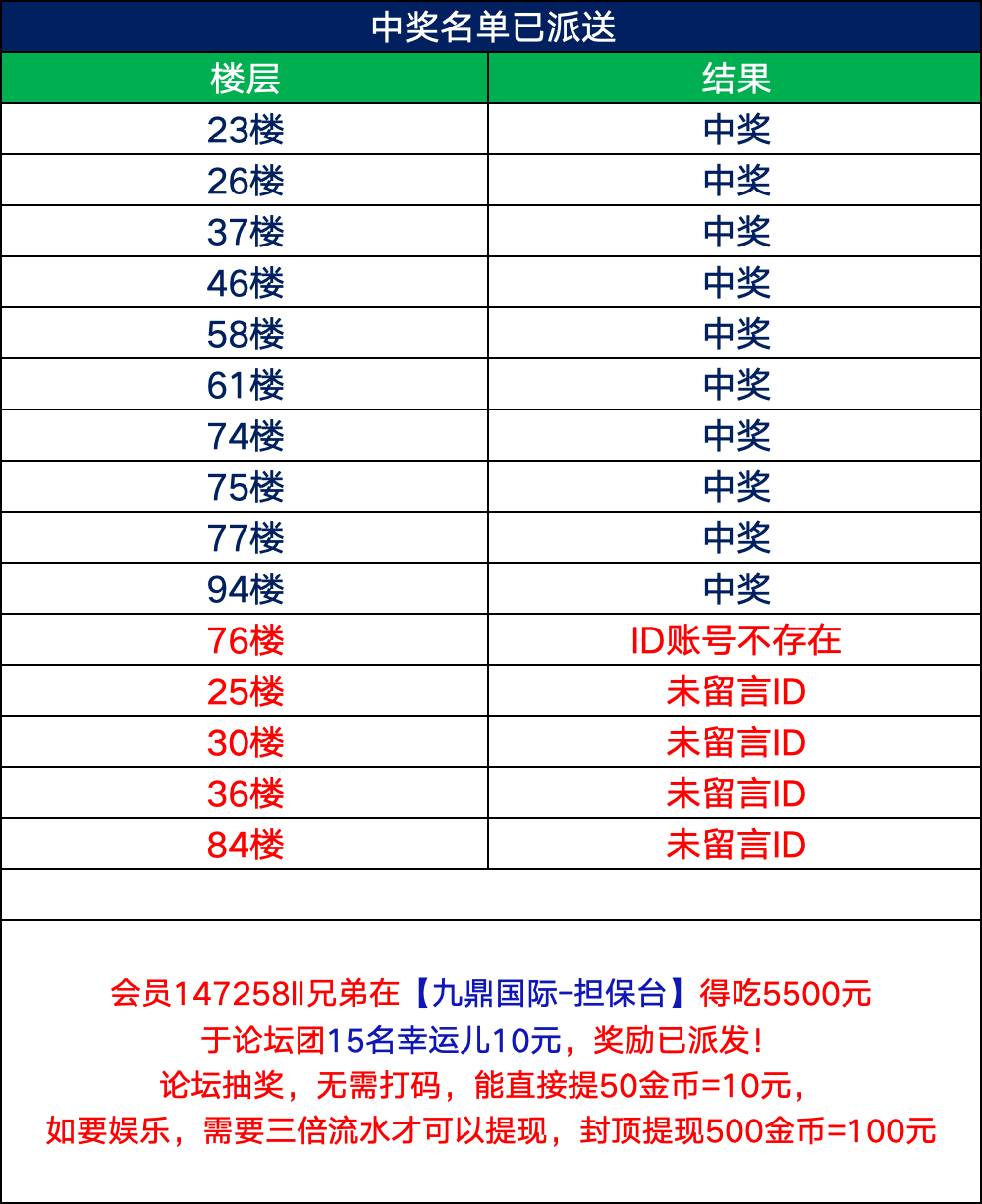 评论区留言你的论坛ID 即可抽中的会直接打进你的论坛PG娱乐账户里面,50金币直接提(10元),无需打码 如果跑去娱乐,需要三倍流水才可以提现封顶提现500金币=100元评论非论坛UID的无效多账号多IP不能提款
