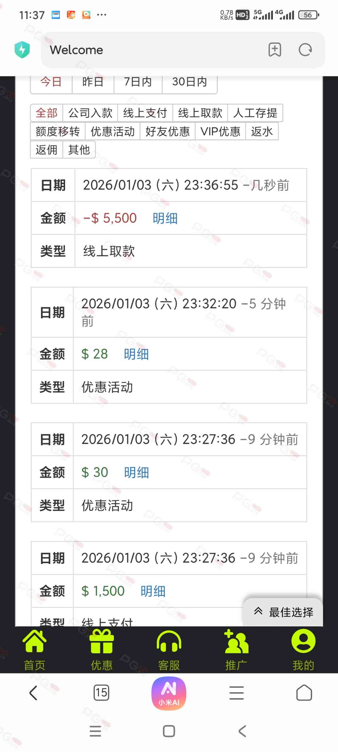 撸成功的老哥,请跟客服说您是从PG论坛 【PG.Biz】过来的。
