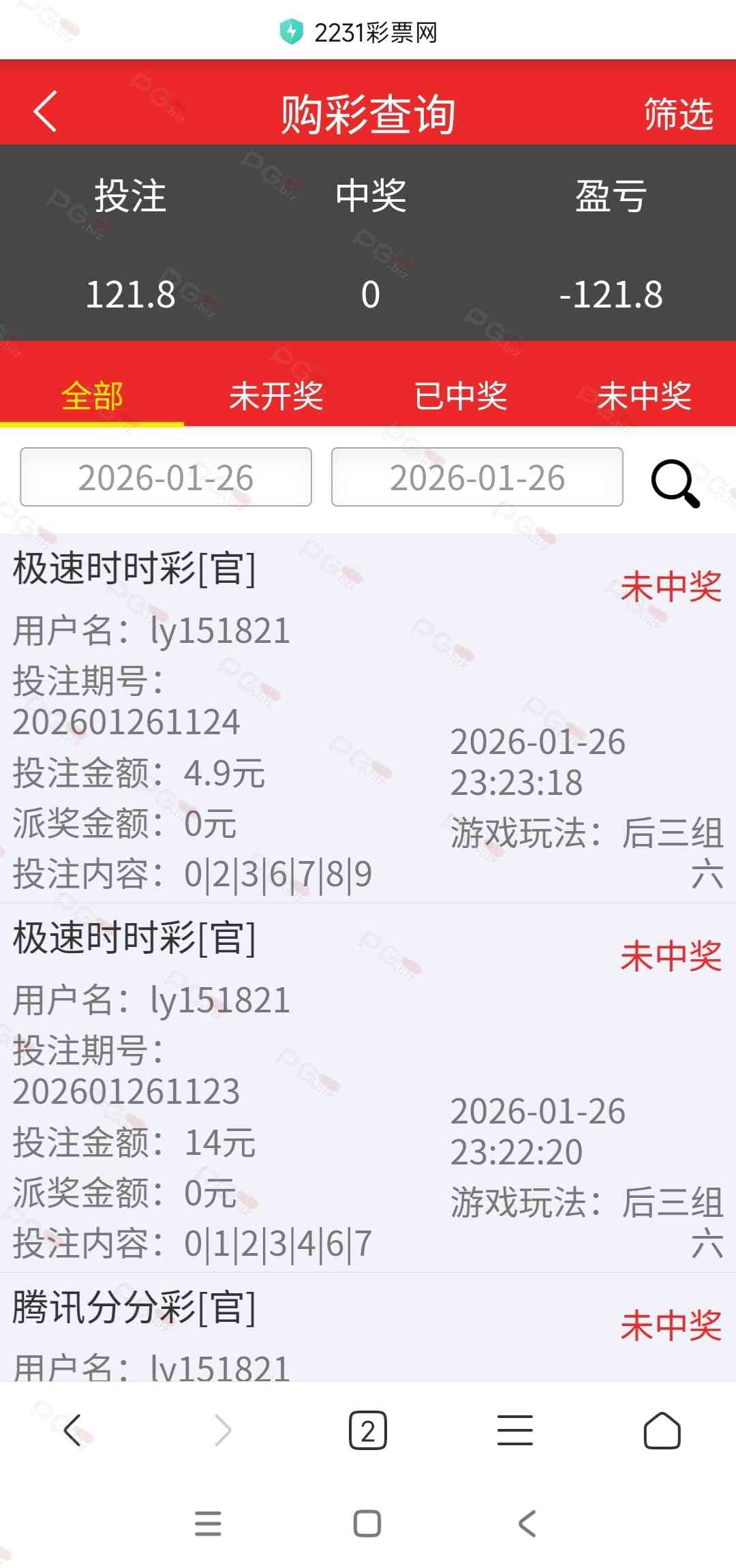 谁玩谁就是钱多,充了103,送了19,彩票10期不中,从没有遇到10期不中的,我又不是买的高倍率的,一倍水杀完,假的一批