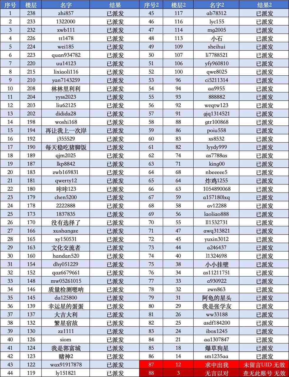 ⚜️中奖名单已派送完毕⚜️
